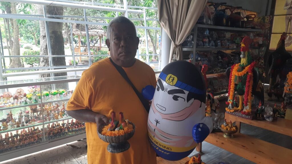 ส่วนทางด้านนายสุดใจ เผือกอุดม หรือ”นก”เดินทางจากย่านสายไหม นำตุ๊กตาล้มลุก พร้อมเครื่องเซ่นไหว้มาแก้บนไอ้ไข่วัดดอนใหญ่ หลังได้โชคก้อนโตในงวดที่ผ่านมา นายสุดใจกล่าวว่าตนเองนั้นถูกรางวัลจากการมาขอพรไอ้ไข่วัดดอนใหญ่มาแล้ว 2 งวดติด ซึ่งงวดล่าสุดตนเองก็ถูกรางวัลได้เงินเกือบแสนบาท ซึ่งในครั้งแรกนั้นตนเองก็ได้ถูกรางวัลเลขท้าย 2 ตัวได้เงินหลักหมื่นมาแล้ว วันนี้จึงเดินทางแก้บนดังกล่าวที่ และตนเองนำตุ๊กตาล้มลุกมาแก้บนนั้น เป็นความเชื่อส่วนตัวว่าเพื่อให้ตนเองนั้นหากประสบปัญหาอะไรทำให้ต้องล้มลุกคลุกคลาน ก็จะสามารถลุกขึ้นมาได้อีกเหมือนกับตุ๊กตาตัวนี้ และก่อนกลับได้ล้วงบอลเสี่ยงทายจากไหทองคำได้เลข 406 กลับไปลุ้นโชคงวดที่ 3 ต่อไป