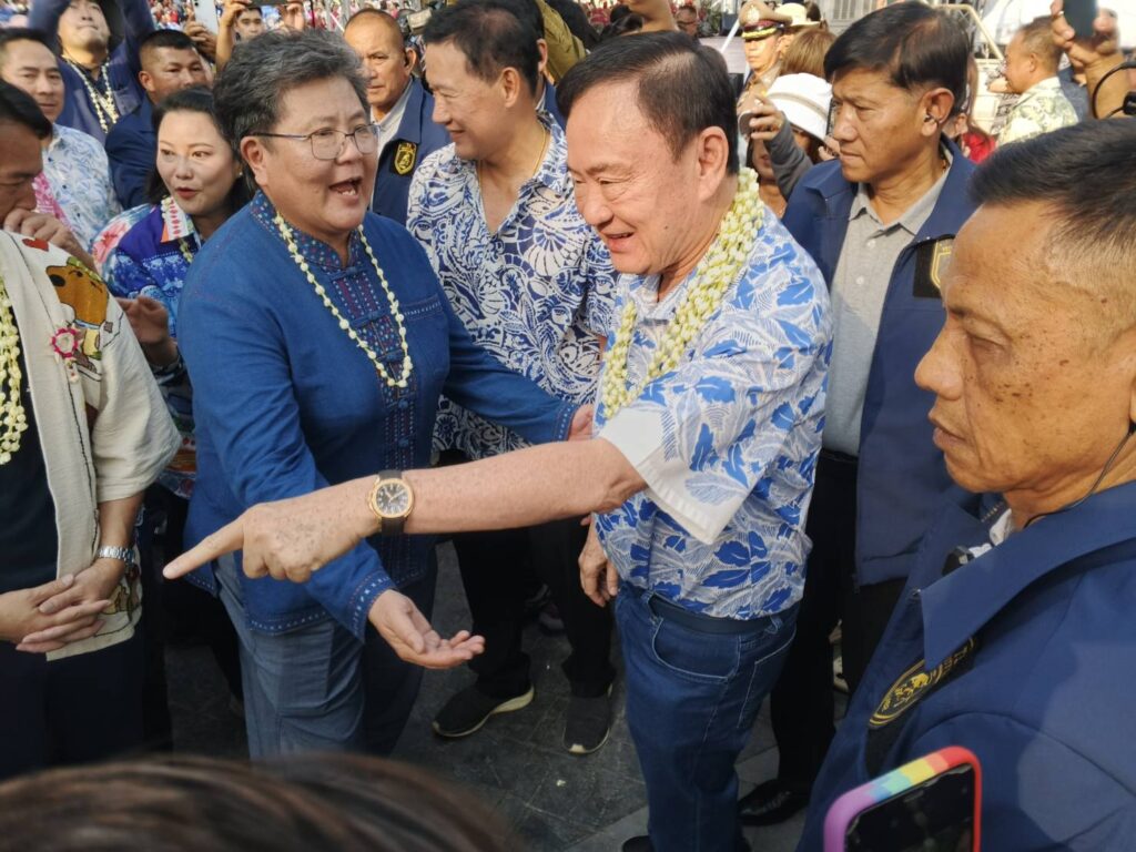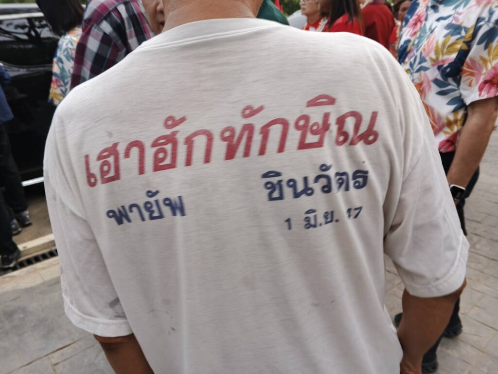 ระหว่างทำพิธีสระเกล้าดำหัวนำโดยนายสมชาย นางเยาวภา นายพิชัย และ พล.ต.ท.กฤตธาพล และคณะผู้มารดน้ำดำหัว ตามลำดับ ซึ่งคณะที่รดน้ำขอพร เป็นชุดสุดท้ายคือ เพื่อนมงฟอร์ต 08 ก่อนดร.ทักษิณ เปิดโอกาสให้ประชาชน หรือแฟนคลับ ได้ถ่ายรูปและเซลฟี่เป็นที่ระลึก จากนั้นได้แวะทักทายแม่ค้าขายโรตี และก๋วยเตี๋ยว ก่อนเดินไปขึ้นรถ ซึ่งระหว่างทางได้พบแฟนคลับ เป็นชายสูงอายุซึ่งสวมเสื้อเขียนข้อความด้านหน้าว่า ไทยรักไทย ส่วนด้านหลังเขียนว่า “เฮารักทักษิณ”พายัพ ชินวัตร 1 มิ.ย. 47 ทำให้ ดร.ทักษิณ ถึงอุทานว่าเป็นเสื้อไทยรักไทย สมัยแรกเกือบซาวปี (20 ปี) พร้อมกับถ่ายรปกับแฟนคลับดังกล่าวและทักทายอย่างเป็นกันเองก่อนขึ้นรถตู้เดินทางกลับทันที