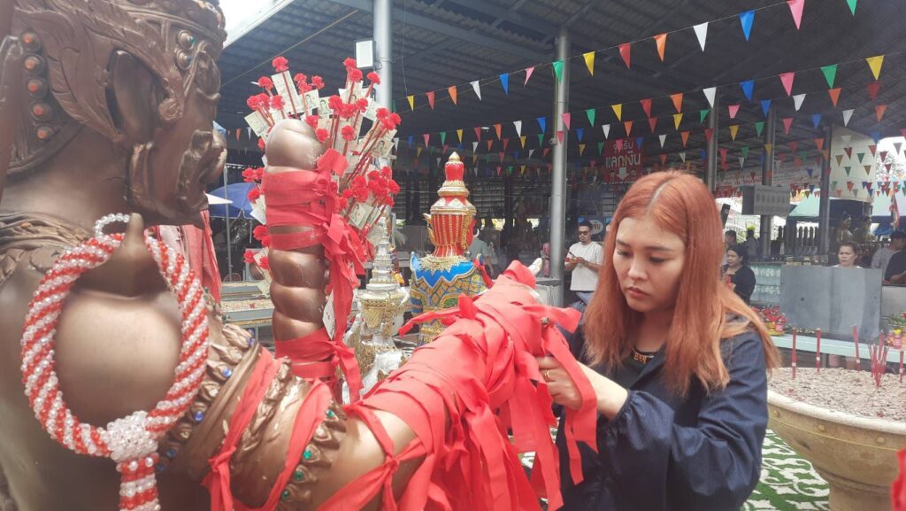 ด้านนางสาวปัณณธร อนันอริยธรรม นำประทัด 30,000 นัดพร้อมด้วยเครื่องเซ่นไหว้มาแก้บนท้าวเวสสุวรรณหลังประสบความสำเร็จในเรื่องที่ขอไว้ได้ยอดทะลุเป้ากว่า 5 แสนบาททุกเดือนนางสาวปัณณธรกล่าวว่าตนเองนั้นทำงานอยู่ที่สำนักกฎหมายแห่งหนึ่งย่านคลองหก อ.ธัญบุรี จ.ปทุมธานี ตนเองจะมาขอพรท้าวเวสฯทุกเดือนว่าขอให้ปิดยอดได้และจะขอพรเพียงข้อเดียวทุกเดือน ซึ่งทุกเดือนก็จะนำประทัด 20,000 ถึง 30,000นัดมาแก้บนทุกเดือนครั้งนี้ก็เป็นครั้งที่7แล้วโดยรวมก็เป็นเวลากว่า 7 เดือนแล้วที่มาแก้บนท้าวเวสฯ และตนเองก็ได้ยอดทะลุเป้ากว่า 5 แสนบาททุกเดือน และครั้งนี้ได้เลข 59 86 กลับไปลุ้นโชคอีกต่อด้วย