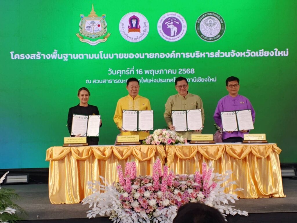 วันที่ 16 พฤษภาคม 2568 ที่สวนรถไฟ อบจ.เชียงใหม่ นายพิชัย เลิศพงศ์อดิศร หรือ ส.ว.ก๊อง นายก อบจ.เชียงใหม่ เป็นประธานพิธีลงนามบันทึกข้อตกลงความร่วมมือป้องกันแก้ไขปัญหาไฟป่าและภัยพิบัติ เหตุฉุกเฉินโดยใช้อากาศ ยานพื้นที่ จ.เชียงใหม่ หรือเอ็มโอยู กับกระทรวงทรัพยากรธรรมชาติและสิ่งแวดล้อม (ทส.) โดยนายจตุพร บุรุษพัฒน์ ปลัดกระทรวง ทส. นายศิวะ ธมิกานนท์ รองผวจ.เชียงใหม่ และนพ.วรัญญู จำนองประสาทพร นายแพทย์สาธารณสุข จ.เชียงใหม่ รวม 4 หน่วยงาน