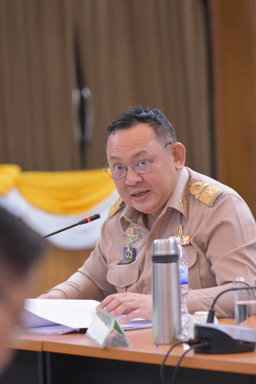 วันพุธที่ 21 พฤษภาคม 2568 เวลาประมาณ 10.00 น. นายพลากร สุวรรณรัฐ องคมนตรี ประธานอนุกรรมการติดตามและขับเคลื่อนโครงการอันเนื่องมาจากพระราชดำริในพื้นที่ภาคเหนือ พร้อมด้วยนายศุภรัชต์ อินทราวุธ รองเลขาธิการ กปร. และคณะอนุกรรมการฯ เดินทางไปยังห้องประชุมเมืองราด ศาลากลางจังหวัดเพชรบูรณ์ เพื่อร่วมประชุมติดตามความก้าวหน้าโครงการอันเนื่องมาจากพระราชดำริ ในเขตพื้นที่จังหวัดเพชรบูรณ์ โดยรับฟังรายงานภาพรวมโครงการอันเนื่องมาจากพระราชดำริ รายงานสรุปสถานะของโครงการอันเนื่องมาจากพระราชดำริ ผลการดำเนินงานของโครงการพัฒนาแหล่งน้ำเหนือเขื่อนป่าสักชลสิทธิ์ จำนวน 7 โครงการ และการต่อยอดโครงการพัฒนาแหล่งน้ำเหนือเขื่อนป่าสักอันเนื่องมาจากพระราชดำริ โอกาสนี้ องคมนตรีให้ข้อเสนอแนะที่เป็นประโยชน์ต่อการดำเนินงานโครงการฯ