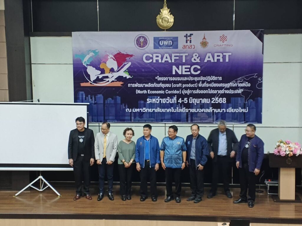 วันที่ 4 มิถุนายน 2568 ที่อาคารเฉลิมพระเกียรติฯ 56 พรรษา มหาวิทยาลัยเทคโนโลยีราชมงคล (มทร.) ล้านนา อ.เมือง จ.เชียงใหม่นายชัชวาลย์ ปัญญา รองผู้ว่าราชการจังหวัดเชียงใหม่ เป็นประธานเปิดโครงการอบรมและประชุมเชิงปฏิบัติการการพัฒนาผลิตภัณฑ์ชุมชน (craft product) พื้นที่ระเบียงเศรษฐกิจภาคเหนือ (North Ecomonic Corridor) มุ่งสู่การส่งออกไปตลาดต่างประเทศมี ผศ.พิสิษฐ์ วิมลธรสิทธิ์ รองอธิการบดีฝ่ายแผน นโยบายและยุทธศาสตร์ ดร.อัคค์สัจจา ดวงสุภาสิญจน์ รองอธิการบดีฝ่ายกิจการนักศึกษาและศิษย์เก่าสัมพันธ์ผศ.ดร.นพพร พัชรประกิติ คณบดีคณะวิศวะกรรมศาสตร์ มทร.ล้านนา พร้อมนักวิชาการ ผู้ประกอบการการค้าและผลิตภัณฑ์ 20 กลุ่มเข้าร่วมกว่า 50 คน