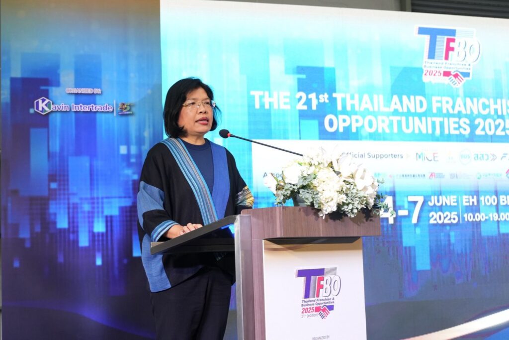 นางอรมน ทรัพย์ทวีธรรม อธิบดีกรมพัฒนาธุรกิจการค้า กระทรวงพาณิชย์ กล่าวระหว่างเป็นประธานพิธีเปิดงานแฟรนไชส์และโอกาสทางธุรกิจ Thailand Franchise & Business Opportunities หรือ TFBO 2025 ว่า กรมพัฒนาธุรกิจการค้า ในฐานะหน่วยงานสังกัดกระทรวงพาณิชย์ มีพันธกิจในการสนับสนุนการเติบโตของธุรกิจแฟรนไชส์ ตามนโยบายรัฐบาล เพื่อส่งเสริมและสนับสนุนการเติบโตทางเศรษฐกิจของประเทศ พร้อมพัฒนาและยกระดับให้ผู้ประกอบการแฟรนไชส์ไทยเข้มแข็ง ยินดีที่เห็นงาน TFBO จัดงานมาอย่างต่อเนื่องมาเป็นปีที่ 21 และมีบทบาทสำคัญในการสร้างผู้ประกอบการใหม่ หรือแฟรนไชส์ซีใหม่หลายพันราย ซึ่งก่อให้เกิดการจ้างงานนับหมื่นตำแหน่ง และใช้วัตถุดิบในประเทศเพิ่มขึ้น
