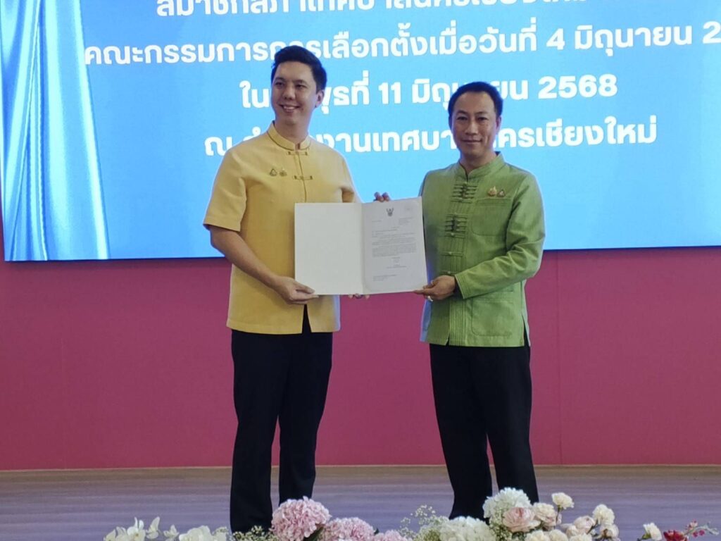วันที่ 11 มิถุนายน 2568 ที่เทศบาลนคราเชียงใหม่ นายนพดล สุยะ ผู้อำนวยการสำนักงานคณะกรรม การการเลือกตั้ง (กกต.) ประจำจังหวัดเชียงใหม่ เป็นประธานการมอบประกาศผลการเลือกตั้งสมาชิกสภา (สท.) และนายกเทศมนตรีนครเชียงใหม่ คือ นายอัศนี บูรณุปกรณ์ นายกเทศมนตรีนครเชียงใหม่ สมัยที่ 2 พรรคเพื่อไทย และ สท. 4 เขต รวม 22 คนจาก 24 คน อย่างเป็นทางการ มีนายเจษฎา พงศธรบริรักษ์ ประธาน กกต. ประจำเทศบาลนครเชียงใหม่ นางนุสรา ยันตรโกวิท ปลัดเทศบาลนครเชียงใหม่ พร้อมผู้บริหาร สท. ข้าราชการ เจ้าหน้าที่เข้าร่วม พร้อมมอบช่อดอกไม้เพื่อแสดงความยินดี และให้กำลังใจ จากนั้นนายอัศนี พร้อมผู้บริหารได้สักการะสิ่งศักดิ์สิทธิ์ภายในเทศบาล ตามลำดับ