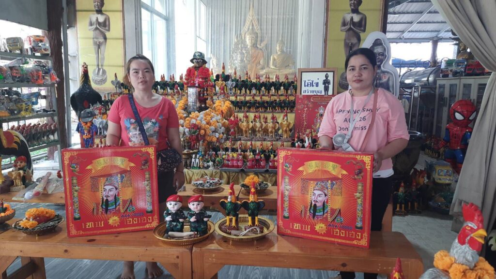 ส่วนทางด้านนางสาวอ้วน(ชื่อเล่น ขอสงวนชื่อนามสกุล)เดินทางมาจาก จ.นครปฐม นำ ประทัด 20,000 นัด ไก่ปูนปั้น 2 ตัว ทหารปั้น 2 ตัวไม้ง่าม 2 อันพร้อมเครื่องเซ่นไหว้มาแก้บนไอ้ไข่หลังได้โชคก้อนโตเกือบแสนบาท นางสาวอ้วนกล่าวว่าตนเองได้มาขอพรจากไอ้ไข่มา4ครั้งแล้วและก็ได้โชคมาแล้วทั้ง4ครั้ง และทุกครั้งที่มาแก้บนก็จะนำประทัด 20,000 นัดพร้อมด้วยไก่ปูนปั้น และทหารปูนปั้นมาแก้บนทุกครั้ง ซึ่งครั้งล่าสุดตนเองก็ได้มาเกือบแสนบาทรู้สึกดีใจเป็นอย่างมาก วันนี้จึงเดินทางมาแก้บนดังกล่าว และก่อนกลับได้จุดธูปเสี่ยงทายได้เลข 255 และยังได้เลข 57 568 จากปลายประทัด และที่น่าแปลกใจคือเลขปลายประทัดทั้ง 2 กล่องกับได้เลขตรงกันอีกสร้างความประหลาดใจเป็นอย่างมาก ตนจะนำกลับไปลุ้นโชคงวดที่ 5 ต่อไปอย่างแน่นอน
