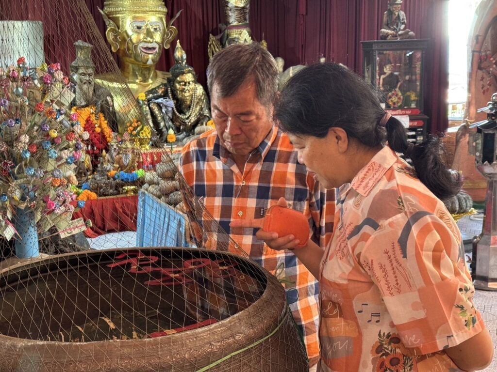 วันที่ 13 มิ.ย.2568 ที่อาศรมฤาษีเณร ธาตุพุทธคุณ ถนนกาญจนาภิเษกวงแหวนตะวันตกหมายเลข 9 ตำบล.โพแตงอำเภอ.บางไทรจังหวัด.พระนครศรีอยุธยา มีผู้คนจำนวนมากเดินทางมากกราบไหว้ขอพรสิ่งศักดิ์สิทธิ์ต่างๆภายในอาศรมทั้งถวายพานฟักทองไหว้ปู่ฤาษีพรหมเมศ ถวายพานน้ำแดงไหว้กุมารทองเจ้าสัวเฮง ถวายพานกุหลาบแดงไหว้ท้ายเวสสุวรรณ 9 หน้าสูง 16 เมตร กราบไหว้ขอพร 3 ศาลเจ้าแม่ตะเคียน เจ้าแม่สไบทิพย์ เจ้าแม่ทอง เจ้าแม่สไบเงิน กราบขอพรเจ้าเงาะในถ้ำจินดามณี กราบไหว้พระพิฆเนศวรกายสีแดง แม่กระซิบ เทพทันใจ องค์พญาครุฑในเมืองยักษ์และยังได้เข้าร่วมพิธีกรรมต่างๆกับอาจารย์ฤาษีเณร ธาตุพุทธคุณ ทั้งถวายข้าวสาร ยกพ่อแก่ ปะพรมน้ำมนต์ อาบน้ำมนต์หมื่นวัดและยังได้ส่องเลขอ่างน้ำมนต์บนศาลาบุญช่วยเพื่อนำไปเสี่ยงโชค โดยตัวเลขจะลอยวนจับกันเรียกว่าเทวะบันดาล เลขทั้งหมดได้แก่ 2 3 4 7 8 9