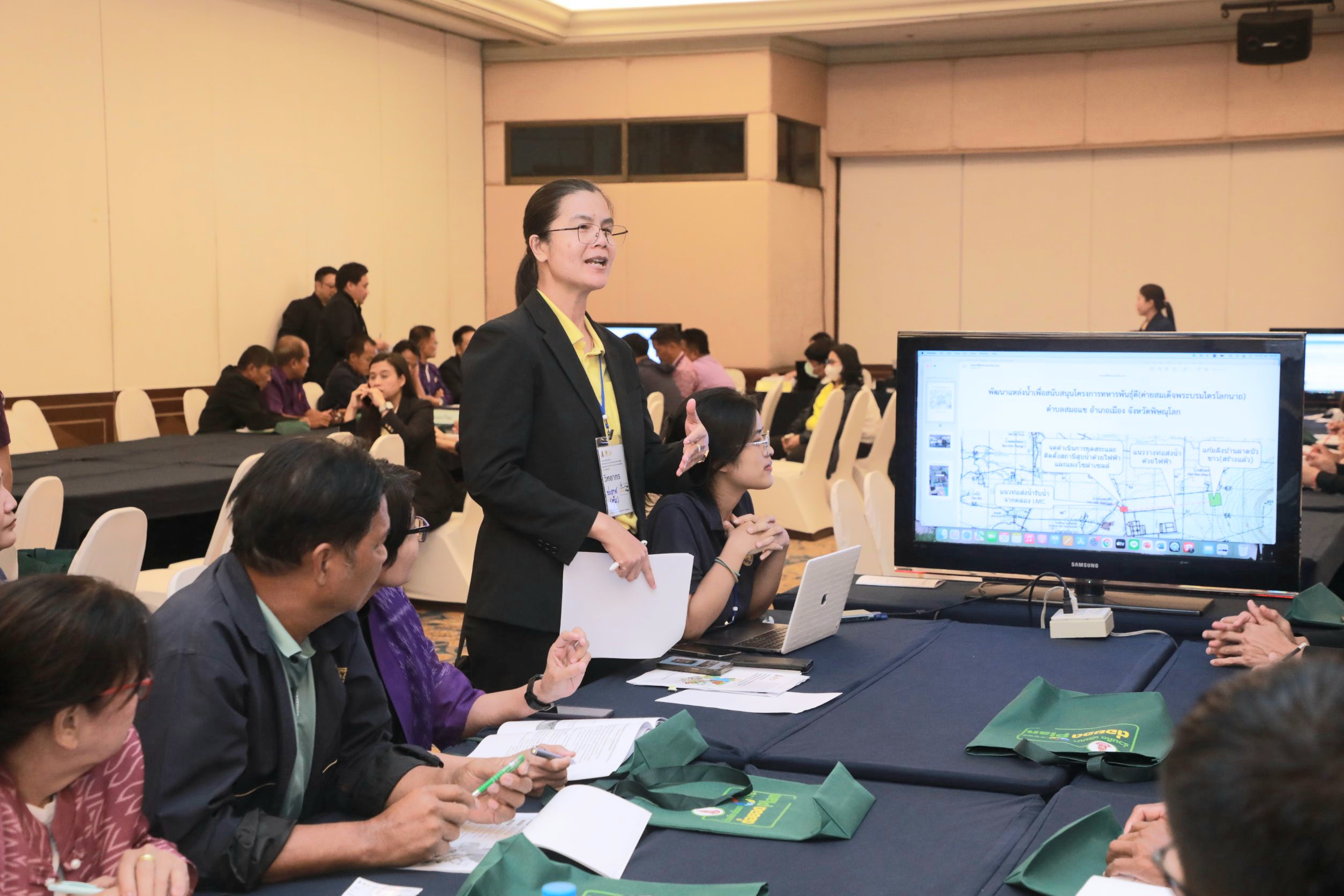 ช่วงบ่าย มีการแบ่งกลุ่มฝึกปฏิบัติเพื่อจัดทำแผนปฏิบัติการขับเคลื่อนการพัฒนาโครงการอันเนื่องมาจากพระราชดำริ จังหวัดพิษณุโลก พ.ศ.2568 -2570 จำนวน 6 โครงการ ประกอบด้วย 1) โครงการเขื่อนแควน้อยบำรุงแดนอันเนื่องมาจากพระราชดำริ บ้านหินลาด ตำบลคันโช้ง อำเภอวัดโบสถ์ 2) เขื่อนนเรศวร ชลประทานทุ่งสาน ตำบลพรหมพิราม อำเภอพรหมพิราม 3) โครงการอ่างเก็บน้ำห้วยทรายใต้อันเนื่องมาจากพระราชดำริ ตำบลบ้านแยง อำเภอนครไทย 4) โรงเรียนตำรวจตระเวนชายแดนบ้านรักไทย ตำบลบ่อภาค อำเภอชาติตระการ 5) ฝายวังสัจธรรมพร้อมระบบส่งน้ำอันเนื่องมาจากพระราชดำริ ตำบลวังนกแอ่น อำเภอวังทอง 6) จัดหาน้ำสนับสนุนโครงการทหารพันธุ์ดี ค่ายสมเด็จพระบรมไตรโลกนาถ ตำบลสมอแข อำเภอเมืองพิษณุโลก และร่วมกันแลกเปลี่ยนความคิดเห็นและข้อเสนอแนะเพื่อพัฒนาการจัดทำแผนฯ ซึ่งจะเป็นประโยชน์และสามารถสร้างการมีส่วนร่วมของทุกภาคส่วนที่เกี่ยวข้องในการร่วมวางแผน ร่วมบูรณาการ และต่อยอดการพัฒนาจากประโยชน์ที่ได้รับจากโครงการฯ ให้เกิดขึ้นแก่ราษฎรในพื้นที่อย่างดียิ่งขึ้นต่อไป