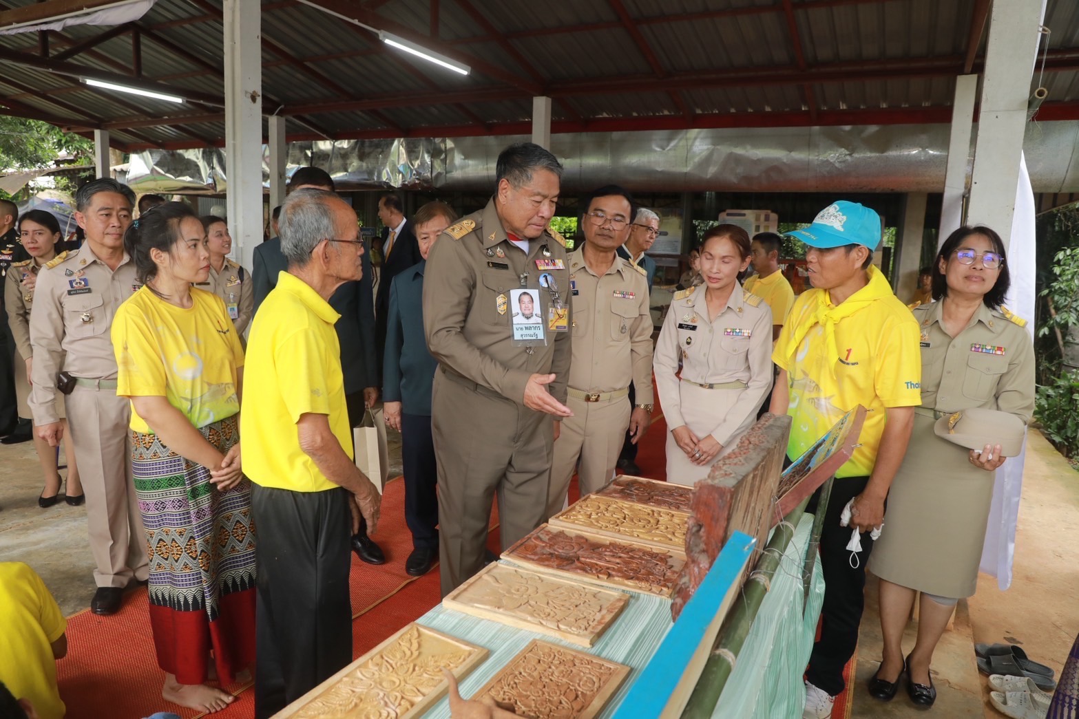 โอกาสนี้ องคมนตรีเชิญสิ่งของพระราชทานมอบแก่สมาชิกของกลุ่มศิลปาชีพบ้านห้วยต้า จำนวน 37 ถุง ประกอบด้วย กลุ่มทอผ้า จำนวน 23 ถุง กลุ่มแกะสลัก จำนวน 11 ถุง กลุ่มภาพวาดดินสอ จำนวน 1 ถุง และกลุ่มจักสาน จำนวน 2 ถุง