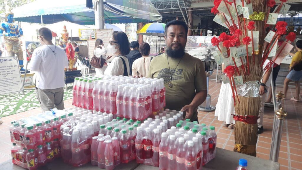 โดยเฉพาะทางด้านนายไพโรจน์ ชันขุนทด หรือช่างหมี เจ้าของบริษัทโอคอนเนอร์ เอ็นจิเนียริ่ง รับทำพื้น epoxy ได้นำเครื่องเซ่นไหว้ชุดใหญ่ น้ำแดง 10 แพ็ค ฟักทอง 5 กิโล และ กุหลาบ 99 ดอกนำมาแก้บนแก่ท้าวเวสสุวรรณหลังจากได้ทั้งโชคและงานชุดใหญ่ โดยนายไพโรจน์ กล่าวว่าตนพร้อมครอบครัวได้มากราบไหว้ขอพรกับท้าวเวสสุวรรณมากว่า 5 ครั้งแล้วซึ่งทุกครั้งที่มาขอก็จะได้โชคกลับไปทุกครั้ง โดยเฉพาะงวดที่ผ่านมาได้โชคเรื่องงานรับเหมามาหลายงานมูลค่านับล้าน อีกทั้งยังได้โชคใหญ่จากงวดที่ผ่านมาแต่ไม่ขอเปิดเผยตัวเลขที่ทำให้ครอบครัวสุขสบายได้ วันนี้จึงได้นำเครื่องเซ่นไหว้ทั้งหมดนำมาแก้บนพร้อมทั้งยังได้จุดธูปเสี่ยงทายได้เลข 346 กลับไปลุ้นโชคครั้งต่อไป