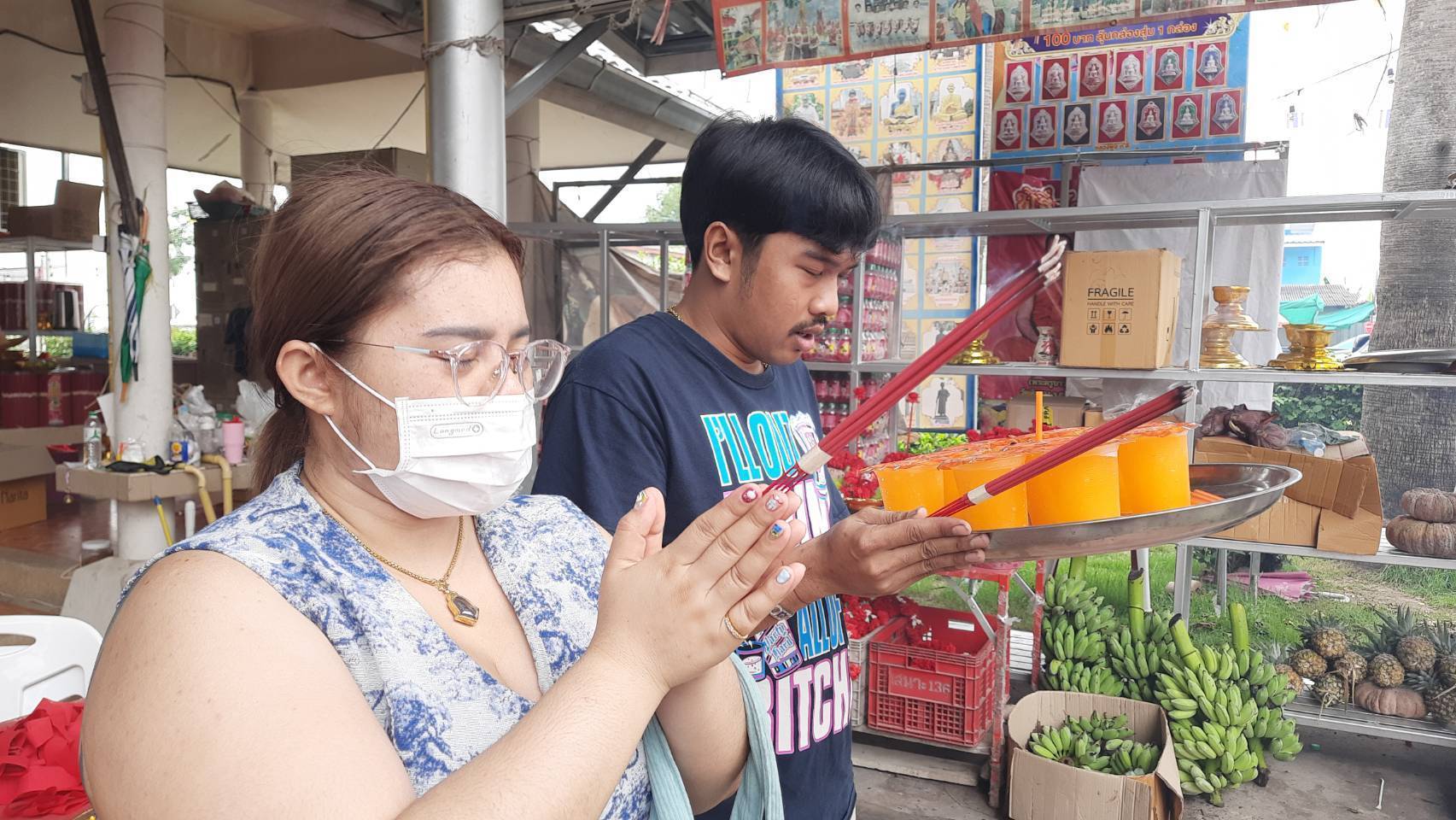 ชาวบ้านหลายคนแห่เจิมมือกับหลวงเตี่ยเสริมดวงการงานไม่พลาดดูตัวเลขฝ่ามือส่วนป้าชาวกทม.ดวงดีบอกมา 3 ครั้งได้โชค 3 ครั้ง งวดนี้ขอโชว์ตัวเลขที่ได้