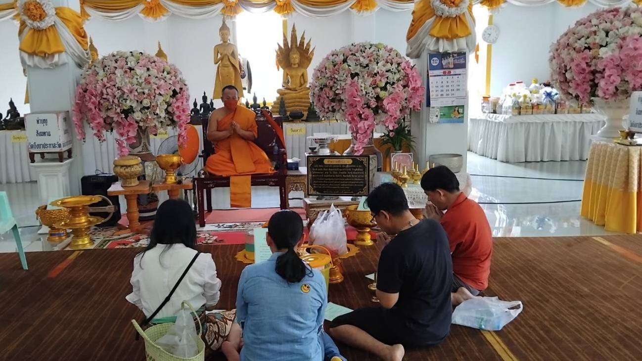 นางระนอง ยินดีรัมย์ นำชุดสังฆทานมาแก้บนท้าวเวสสุวรรณหลังขอพรให้อาการป่วยดีขึ้นแล้วสมดังใจหวัง นางระนองกล่าวว่าตนเองได้มาขอพรท้าวเวสสุวรรณไว้ว่าขอให้หายป่วยจากเส้นเลือดสมองตีบ แข็งขาอ่อนแรง ทำอะไรไม่ได้ต้องนอนติดเตียงตลอดเวลาตนเองจึงเดินทางมาบนบานขอพรท้าวเวสสุวรรณให้หายป่วย แล้วอาการของตนเองก็ค่อยๆดีขึ้น ซึ่งตอนนี้แม้ยังไม่หายป่วยแต่ก็เป็นปกติเกือบสมบูรณ์อาการดีขึ้นถึง 90%แล้ววันนี้จึงนำชุดสังฆทานมาแก้บนดังกล่าว และยังได้จุดธูปเสี่ยงทายได้เลข 889 กลับไปลุ้นโชคอีกด้วย