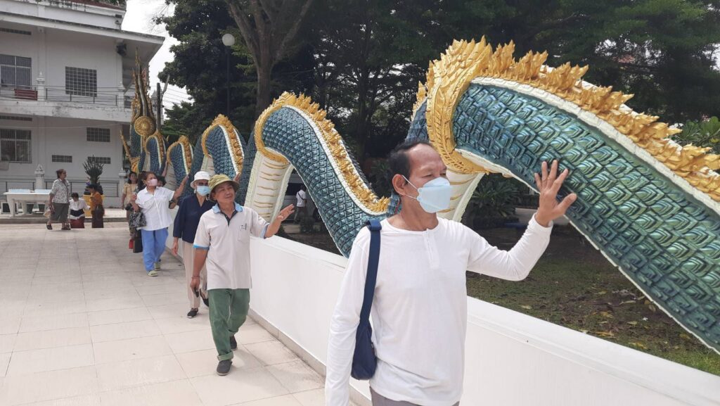ผู้สื่อข่าวรายงานว่า ที่วัดบึงบาประภาสะวัต ต.บึงบา อ.หนองเสือ จ.ปทุมธานี ที่ด้านนอกทางขึ้นวิหาร ได้มีสายมูหลายคนจะมาลูบเกล็ดพญานาค และโกยเกล็ดพญานาคเข้ากระเป๋าของตนก่อนจะขึ้นวิหารและลงจากวิหารกันทุกคน หลังจากที่ตนได้ทราบข่าวแล้วตนก็รู้สึกเกิดศรัทธาอยากมากราบไหว้ขอพรบ้างเพราะมีทั้งพญานาค ท้าวเวสสุวรรณ ไอ้ไข่ และแม่ตะเคียน ที่ตนนับถือและศัทธาอยู่ จึงอยากเดินทางมากราบไหว้ขอพรให้ได้ และสายมูที่เดินทางมาวัดบึงบาฯเหมือนต้องทำกันทุกคน ถ้าไม่ทำก็เหมือนมาไม่ถึงวัดบึงบาฯนั่นเอง ซึ่งก็เป็นความเชื่อส่วนบุคคล