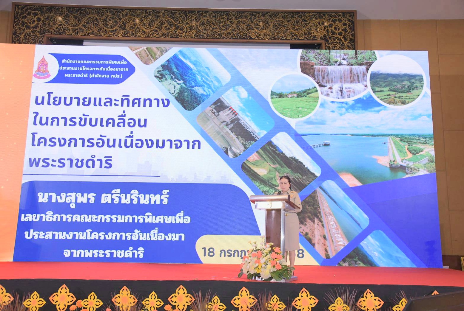 วันศุกร์ที่ 18 กรกฎาคม 2568 เวลาประมาณ 10.15 น. นายพลากร สุวรรณรัฐ องคมนตรี ประธานอนุกรรมการติดตามและขับเคลื่อนโครงการอันเนื่องมาจากพระราชดำริในพื้นที่ภาคเหนือ นางสุพร ตรีนรินทร์ เลขาธิการ กปร. พร้อมด้วยคณะที่ปรึกษาอนุกรรมการฯ และคณะอนุกรรมการฯ เยี่ยมชมนิทรรศการจากหน่วยงานร่วมดำเนินงานโครงการอันเนื่องมาจากพระราชดำริ ณ โรงแรมแชงกรี-ลา เชียงใหม่ ตำบลช้างคลาน อำเภอเมืองเชียงใหม่ จังหวัดเชียงใหม่