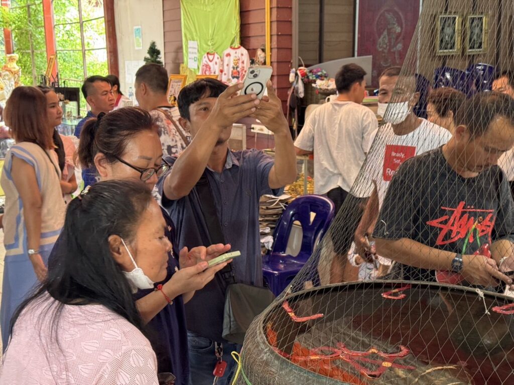 วันที่ 29 ก.ค.2568 ที่อาศรมฤาษีเณร ธาตุพุทธคุณ ถนนกาญจนาภิเษกวงแหวนตะวันตกหมายเลข 9 มีผู้คนจำนวนมากเดินทางมากกราบไหว้ขอพรสิ่งศักดิ์สิทธิ์ต่างๆภายในอาศรมทั้งถวายพานฟักทองไหว้ปู่ฤาษีพรหมเมศ ถวายพานน้ำแดงไหว้กุมารทองเจ้าสัวเฮง ถวายพานกุหลาบแดงไหว้ท้ายเวสสุวรรณ 9 หน้าสูง 16 เมตร กราบไหว้ขอพร 3 ศาลเจ้าแม่ตะเคียน เจ้าแม่สไบทิพย์ เจ้าแม่ทอง เจ้าแม่สไบเงิน กราบขอพรเจ้าเงาะในถ้ำจินดามณี กราบไหว้พระพิฆเนศวรกายสีแดง แม่กระซิบ เทพทันใจ องค์พญาครุฑในเมืองยักษ์และยังได้เข้าร่วมพิธีกรรมต่างๆกับอาจารย์ฤาษีเณร ธาตุพุทธคุณ ทั้งถวายข้าวสาร ยกพ่อแก่ ปะพรมน้ำมนต์ อาบน้ำมนต์โสฬสมงคลและยังได้ส่องเลขอ่างน้ำมนต์บนศาลาบุญช่วยเพื่อนำไปเสี่ยงโชค โดยตัวเลขจะลอยวนจับกันเรียกว่าเทวะบันดาล เลขทั้งหมดได้แก่ 1 2 3 4 5 6 และสิ่งของต่างที่ประชาชนนำมาถวายแก้บนทั้งน้ำแดง ข่าวสาร ฟักทอง น้ำดื่มและขนมทางอาศรมได้นำไปบริจาคให้ศูนย์อพยพที่จังหวัดสุรินทร์