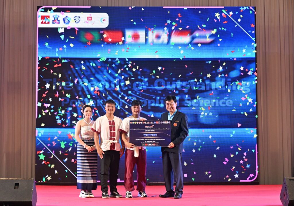 นายยศพล เวณุโกเศศ เลขาธิการคณะกรรมการการอาชีวศึกษา (เลขาธิการ กอศ.) กล่าวว่า สำนักงานคณะกรรมการการอาชีวศึกษาจัดประชุมวิชาการนานาชาติ โครงการวิทยาลัยเทคโนโลยีฐานวิทยาศาสตร์ ครั้งที่ 10 (The 10th International Convention on Vocational Student’s Innovation Project) เมื่อวันที่ 12-15 สิงหาคม 2568 ที่ผ่านมา ณ โรงแรมสีมาธานี จังหวัดนครราชสีมา โดยมอบหมายให้ นายสง่า แต่เชื้อสาย รองเลขาธิการคณะกรรมการการอาชีวศึกษา (รองเลขาธิการ กอศ.) เป็นประธานพิธีปิดและมอบรางวัลแก่สุดยอดผลงานนวัตกรรมจากนักเรียน นักศึกษาอาชีวะทั้งในและต่างประเทศ