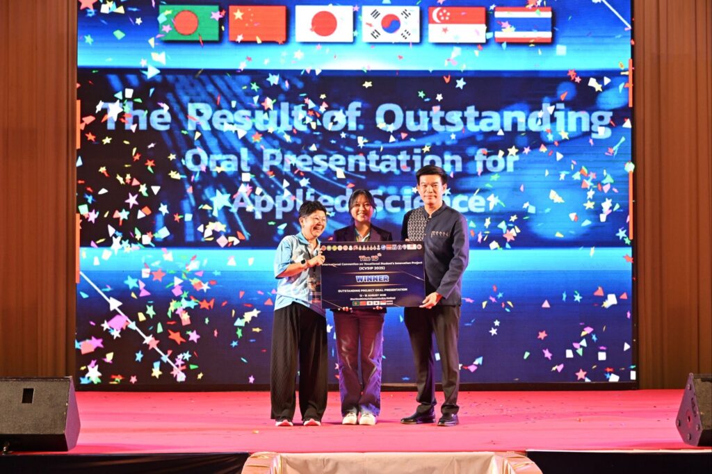 3.ประเภท Oral presentation Applied Science รางวัลชนะเลิศ ได้แก่ ผลงาน FURIKAKE-RICE SEASONING FROM LOCUST จากโรงเรียนจิตรลดาวิชาชีพ