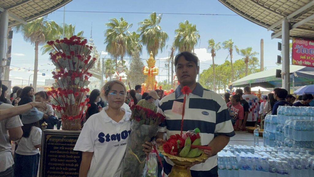 ด้านนายณัฐนนท์ ไล้ทองคำ อายุ 28 ปีชาวบ้านนครสวรรค์ กล่าวว่าวันนี้นำดอกกุหลาบ 99 ดอกข้าวสาร 1 ถุงน้ำดื่ม 5 แพ็ค พวกมาลัย และ เครื่องเซ็นไหว้นำมาแก้บนกับท้าวเวสสุวรรณวัดดอนใหญ่ หลังจากมาขอพรขอให้ได้งานที่สมหวังโดยนายณัฐนนท์ ไล้ทองคำ กล่าวว่าเมื่ออาทิตย์ที่ผ่านมาตนได้มาขอพรจากท้าวเวสสุวรรณวัดดอนใหญ่ ว่าขอให้ตนสมหวังเรื่องงานที่ได้สมัครไปก่อนหน้านี้ ซึ่งตนเองอยากได้ทำงานที่บริษัทแห่งนี้มากกลัวไม่ได้เพราะมีคนสมัครงานเป็นจำนวนมากดังนั้นจึงได้มาขอท้าวเวสฯ ปรากฏว่าผ่านมาเพียงอาทิตย์เดียวบริษัทที่ตนสมัครได้เรียกตนไปทำงานรู้สึกดีใจมากวันนี้จึงได้เดินทางมาแก้บนพร้อมกับจุดธูปเสี่ยงโชคได้เลข 59 กลับไปเสี่ยงโชคอีกครั้ง