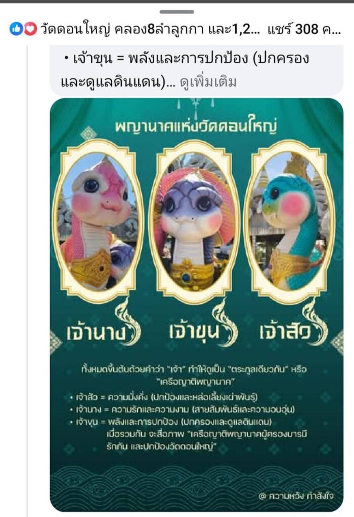 ทั้งนี้ทางวัดดอนใหญ่ยังได้มีการประชาสัมพันธ์แก่นักท่องเที่ยวในการร่วมกันตั้งชื่อพญานาคทั้ง 2 ตนที่ก่อสร้างขึ้นมาใหม่ โดยสามารถเข้าไปตั้งชื่อได้ที่เพจ “วัดดอนใหญ่ คลอง8ลำลูกกา” และจะประกาศผลโหวตตากการตั้งชื่อจากชื่อที่ กดถูกใจมากที่สุด ซึ่งตอนนี้ ชื่อที่ได้รับความนิยมมากที่สุดคือชื่อ เจ้านาง(พญานาคสีชมพู) เจ้าขุน(พญานาคสีม่วง) เจ้าสัว(พญานาคสีเขียว ชื่อเดิม พญานาคน้อย) ภายในวันที่ 20 สิงหาคมนี้