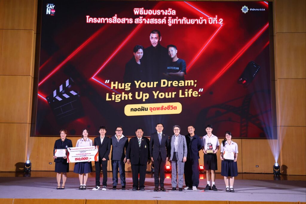 สำนักงานคณะกรรมการป้องกันและปราบปรามยาเสพติด (สำนักงาน ป.ป.ส.) จัดพิธีมอบรางวัลแก่ทีมผู้ชนะระดับประเทศในโครงการ “สื่อสาร สร้างสรรค์ รู้เท่าทัน ยาบ้า (BE SMART SAY NO TO DRUGS) ปีที่ 2 ภายใต้แนวคิด “Hug Your Dream ; Light Up Your Life” หรือ “กอดฝัน จุดพลังชีวิต” หนุนเยาวชนทั่วประเทศร่วมผลิตสื่อสร้างสรรค์ผ่านแพลตฟอร์มติ๊กต็อก เพื่อสนับสนุนให้เด็กและเยาวชนไทยมีพื้นที่ปลอดภัยเชิงสร้างสรรค์ผ่านโซเชียลมีเดีย ชิงเงินรางวัลรวมมูลค่า 16,060,000 บาท โดยมี พ.ต.อ.ทวี สอดส่อง รัฐมนตรีว่าการกระทรวงยุติธรรม เป็นประธานมอบรางวัล