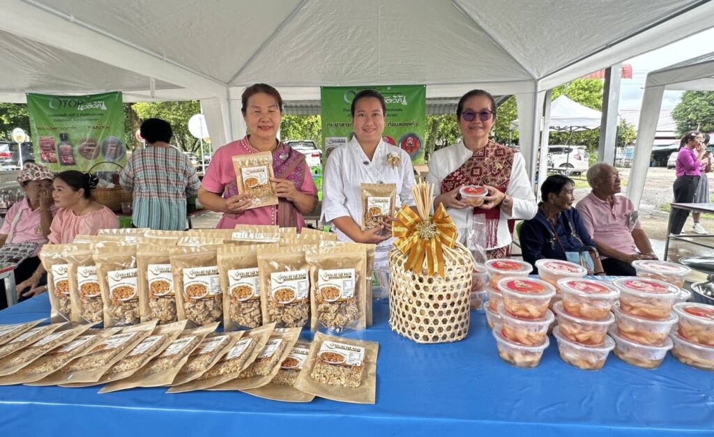 เมื่อวันที่ 26 สิงหาคม 2568 ณ วัดเนินหินแร่ หมู่ที่ 4 ตำบลหนองแสง อำเภอปากพลี จังหวัดนครนายก นายสรรเสริญ คำทอง นายอำเภอปากพลี ร่วมเป็นประธานเปิดงาน “OTOP นวัตวิถีกิจกรรมทดสอบตลาด ภายใต้โครงการเพิ่มศักยภาพการผลิตสินค้าเกษตรปลอดภัยและส่งเสริมวิสาหกิจแปรรูปเพื่อเพิ่มมูลค่า“โดยมีนายวิสุทธิ์ วงศ์สว่าง พัฒนาการอำเภอปากพลี กล่าวตอนรับนายอำเภอ โดยทางจังหวัดนครนายก ได้จัดสรรงบประมาณภายใต้โครงการเพิ่มศักยภาพการผลิตสินค้าเกษตรปลอดภัยและส่งเสริมวิสาหกิจแปรรูปเพื่อเพิ่มมูลค่า กิจกรรมย่อยที่ 3 การพัฒนาออกแบบตราสินค้าและบรรจุภัณฑ์กิจการอาหารปลอดภัยชุมชนท่องเที่ยว OTOP นวัตวิถี วัตถุประสงค์เพื่อพัฒนาผลิตภัณฑ์และออกแบบสินค้า บรรจุภัณฑ์และเชื่อมโยงช่องทางการตลาดโดยบูรณาการความร่วมมือภาคีเครือข่ายภาครัฐและภาคเอกชน ซึ่งเป็นกิจกรรมทดสอบตลาด โดยมีการแสดงผลิตภัณฑ์ชุมชน ที่ได้รับการพัฒนา จำนวนชุมชนละ 2 ผลิตภัณฑ์ จากตำบลหนองแสง ได้แก่ ขนมบ้าบิ่นและไซรัปมะม่วงหาวมะนาวโห่ จากบ้านคลองคล้า หมู่ที่ 1 ปลาร้าคั่วกลิ้งและหมี่กรอบสมุนไพรจากบ้านหนองหัวลิงใน หมู่ที่ 3 และกระยาสารทและกระท้อนลอยแก้ว จากบ้านเนินหินแร่หมู่ที่ 4 ซึ่งถือเป็นการแสดงเอกลักษณ์ชุมชน ด้วยการสาธิตการทำอาหารพื้นถิ่นจากวัตถุดิบที่มีในชุมชนและต้องการ