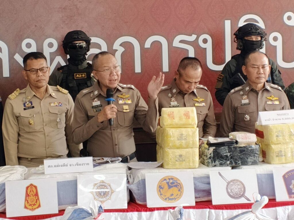 วันที่ 27 สิงหาคม 2568 ที่สำนัก งานตำรวจภูธร ภาค 5 อ เมืองจ.เชียงใหม่ พล.ต.ท.กฤตธาพล ยี่สาคร ผบช.ภ.5 เป็นประธานแถลงผลจับกุมยาเสพติดรายสำคัญ ของ สภ.แม่เจดีย์ จ.เชียงราย พร้อมจับกุมนายจักรพงศ์ อายุ 42 ปี คนขับรถชาวนครศรีธรรมราช รถบรรทุกยี่ห้อฮีโน่ สีขาว ทะเบียน 70-8043 สุพรรณบุรี ตู้ทึบสีขาวที่ใช้ซุกซ่อนยาบ้าในช่องดัดแปลง บนหลังคารถดังกล่าว จำนวน 20 กระสอบ รวม 6 ล้านเม็ด ซึ่งจับกุมได้ที่ด่านตรวจยาเสพติดแม่โถ เมื่อวันที่ 25 สิงหาคม เวลา 04.00 น. ก่อนมุ่งหน้าเข้าพื้นที่ จ.เชียงใหม่ ซึ่งผู้ต้องหาให้การรับสารภาพจึงส่งตัวให้ สภ.แม่เจดีย์ ดำเนินคดี ทั้งนี้ยาบ้าดังกล่าว ผลิตและลำเลียงมาจากแนวชายแดนติดประเทศเพื่อนบ้าน ที่อยู่ในเขตอิทธิพลว้าแดง ก่อน พล.ต.ท.กฤตธาพล ได้มอบเงินรางวัลแก่ชุดจับกุมดังกล่าว ตามลำดับ
