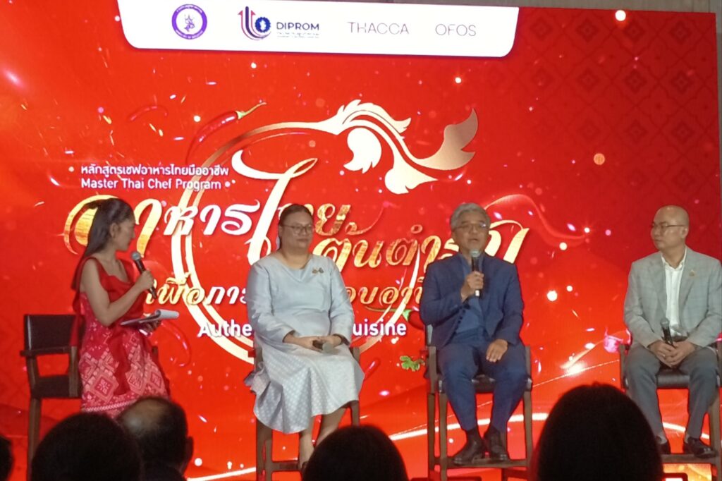 สำหรับ หลักสูตร “อาหารไทยต้นตำรับเพื่อการประกอบอาชีพ” ได้รับการออกแบบให้ครอบคลุมทั้งภาคทฤษฎีและการฝึกปฏิบัติจริง รวมกว่า 242 ชั่วโมง แบ่งเป็นการเรียนออนไลน์ 92 ชั่วโมง ผ่านระบบ OFOS และ DIPROM E-Learning และการฝึกอบรมภาคสนาม 150 ชั่วโมง ณ สถานที่จัดการอบรม โดยเนื้อหาครอบคลุมตั้งแต่การเรียนรู้ทฤษฎีพื้นฐานอาหารไทย การคัดเลือกวัตถุดิบอาหารไทยต้นตำรับ การปรุงอาหารไทยต้นตำรับ 50 เมนูมาตรฐาน และเมนูที่สะท้อนอัตลักษณ์ไทยเพิ่มอีก 10 เมนู รวมถึงการถ่ายทอดศิลปะการจัดจาน เทคนิคการบริหารจัดการครัว การควบคุมคุณภาพอาหาร และความรู้ด้านมาตรฐานสุขอนามัยและความปลอดภัยอาหารตามหลักสากล