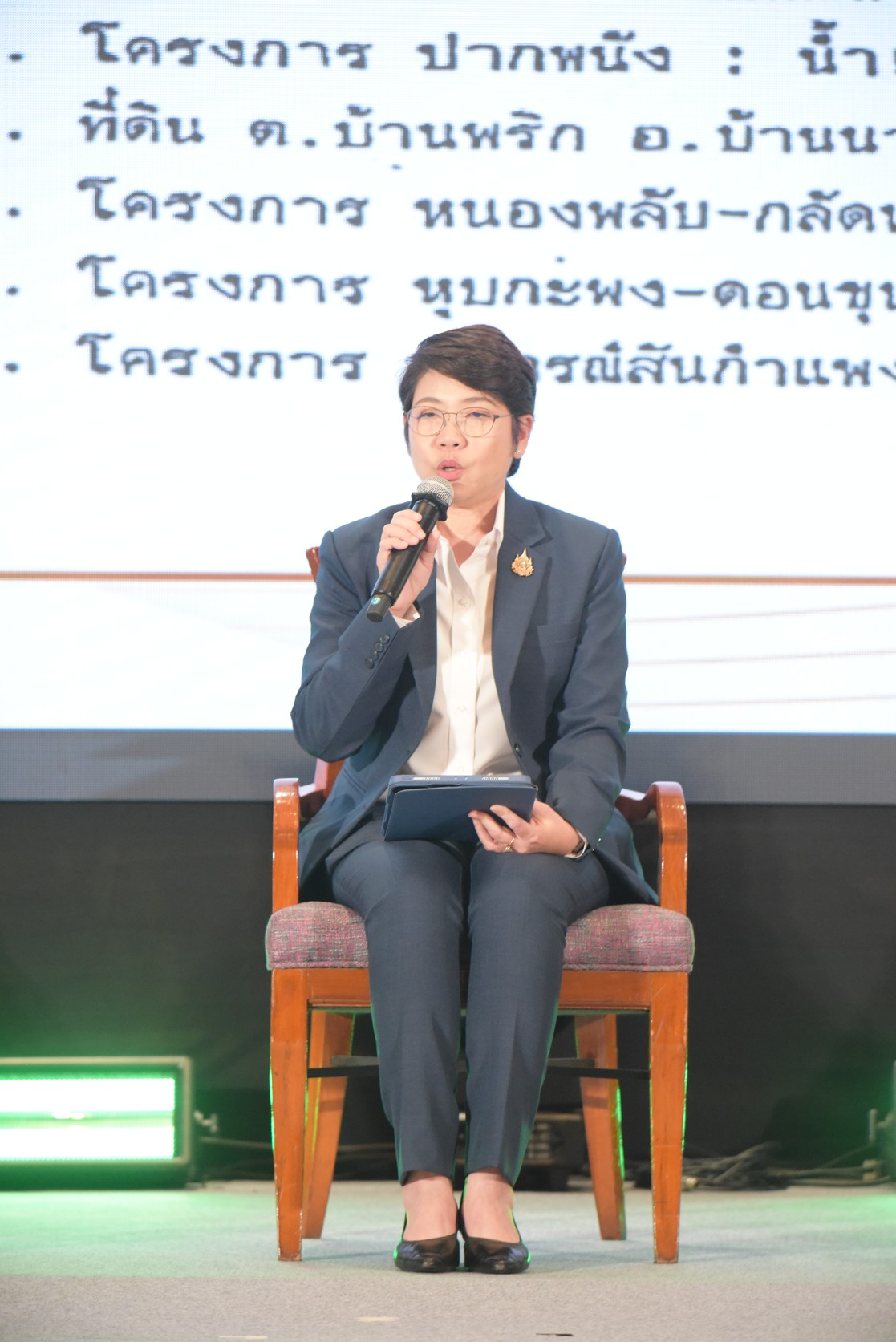 โอกาสนี้ นางพิชญดา หัศภาค รองเลขาธิการ กปร. บรรยายในหัวข้อ : สำนักงาน กปร.กับบทบาทขับเคลื่อนโครงการอันเนื่องมาจากพระราชดำริ “ขยายประโยชน์ให้กว้างไกล” ในช่วงบ่าย ผู้แทนสำนักงบประมาณบรรยายในหัวข้อ : การบริหารจัดการงบประมาณ กปร. “ประสิทธิภาพ คุ้มค่าและมุ่งผลสัมฤทธิ์” จากนั้น มีการเสวนา P2P “Project 2 People” : การบริหารจัดการโครงการอันเนื่องมาจากพระราชดำริ โดยมุ่งประโยชน์สุขแก่ประชาชน โดยผู้แทนจากกระทรวงมหาดไทย กรมอุทยานแห่งชาติสัตว์ป่า และพันธุ์พืช กรมป่าไม้กรมชลประทาน กรมพัฒนาที่ดิน และกรมประมง