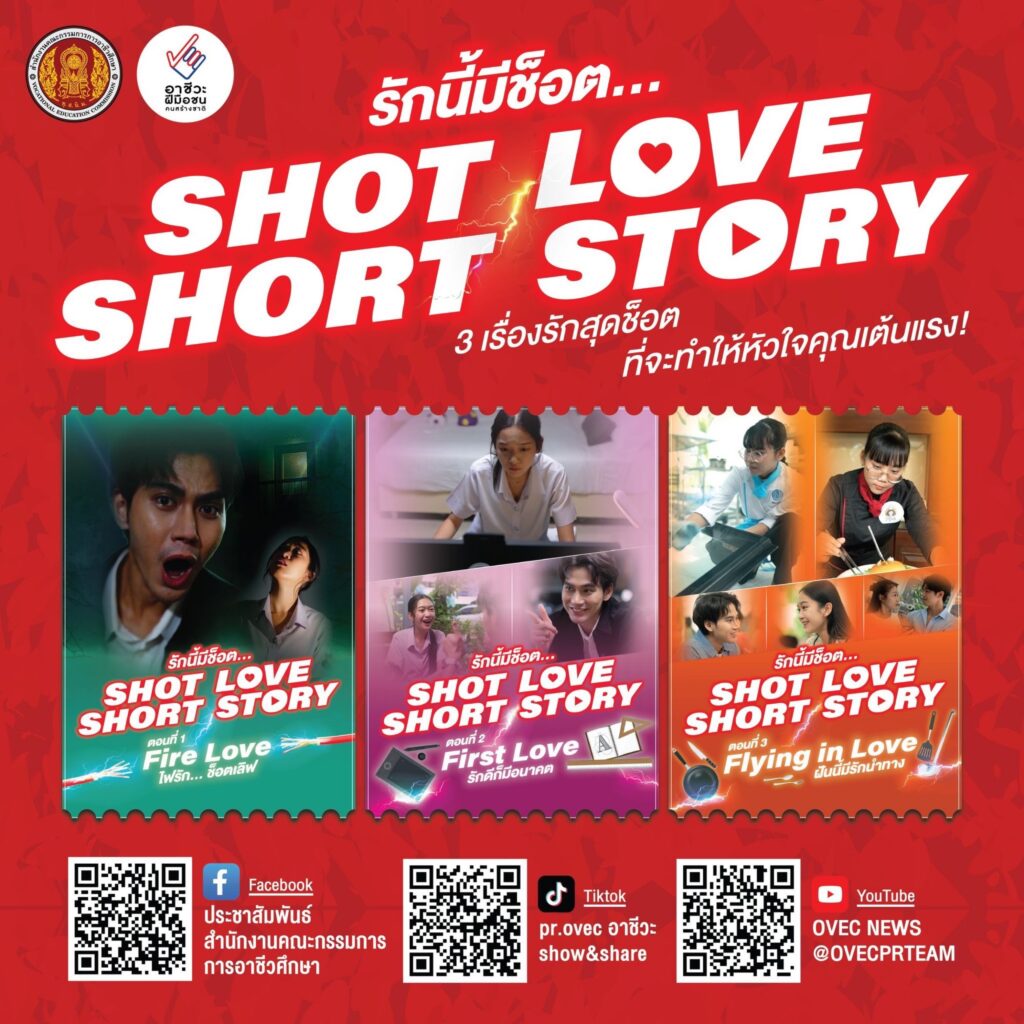 สำหรับภาพยนตร์สั้นอาชีวศึกษา “R Series : รักนี้มีช็อต..Shot Love Shot Story” เป็นถ่ายทอดเรื่องราวจากผู้เรียนอาชีวะ ส่งต่อความรัก ความฝัน และการใช้ทักษะวิชาชีพในชีวิตประจำวัน ผ่านมุมมองของวัยรุ่นยุคใหม่ โดยสามารถรับชมพร้อมกันแล้ววันนี้ ทาง Page Facebook: ประชาสัมพันธ์สำนักงานคณะกรรมการการอาชีวศึกษา , TikTok: provec และ YouTube: Ovec News