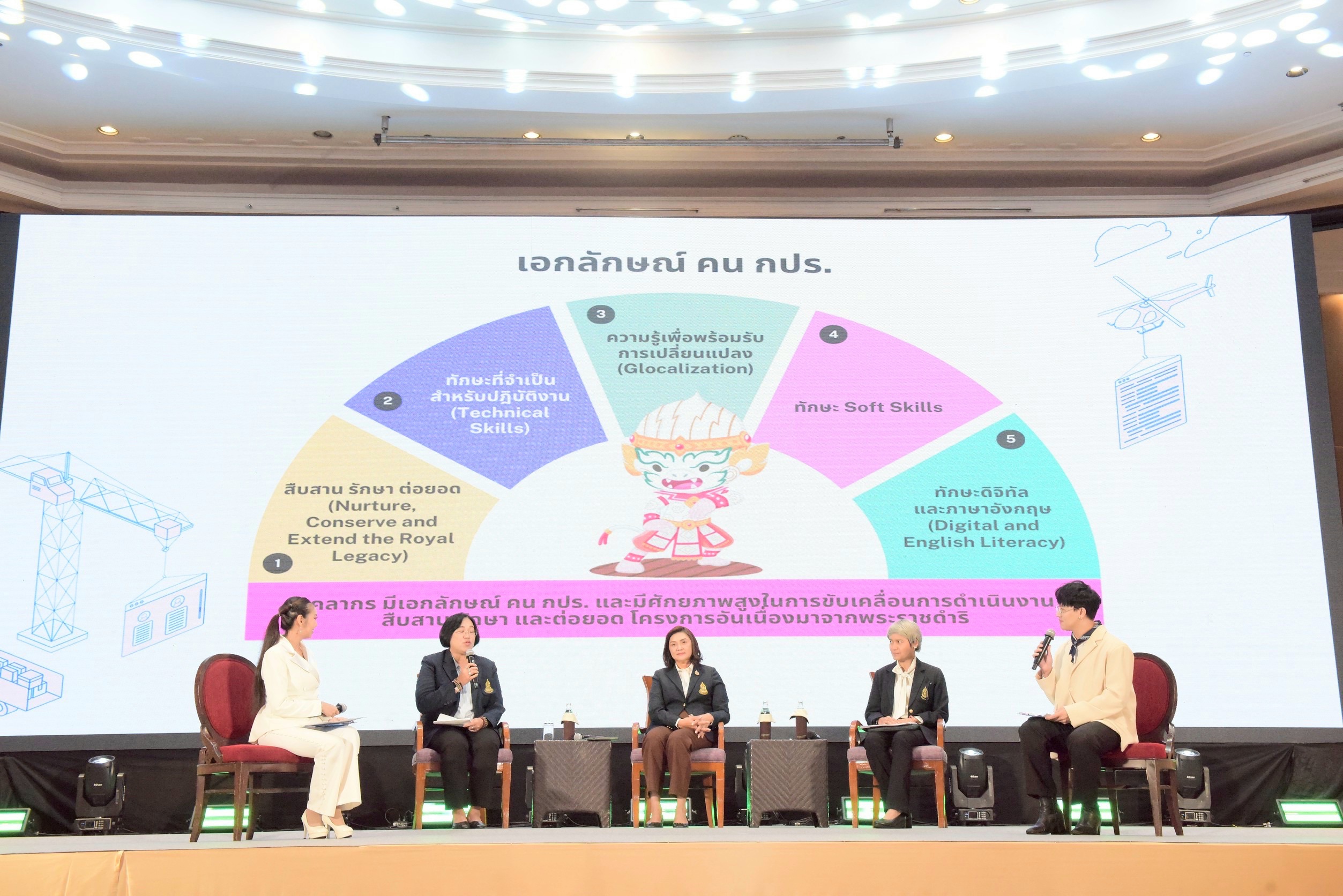 โดยในวันนี้มีการเสวนา 2 หัวข้อหลักคือ “ถกมุมคิดและทิศทางการขับเคลื่อนโครงการอันเนื่องมาจากพระราชดำริ” โดยผู้บริหารสำนักงาน กปร. ซึ่งจะถ่ายทอดผลการดำเนินงานและแผนงานที่จะดำเนินงานเพื่อให้การขับเคลื่อนโครงการอันเนื่องมาจากพระราชดำริไปสู่อนาคตที่ยั่งยืน การเสวนาในหัวข้อ “มองดูข้างใน ออกไปข้างนอก” โดยผู้อำนวยการศูนย์ศึกษาการพัฒนาอันเนื่องมาจากพระราชดำริ ทั้ง 6 แห่ง ถ่ายทอดผลสำเร็จจากการพัฒนาตามแนวพระราชดำริ การขยายผลสู่ศูนย์เรียนรู้ในด้านต่าง ๆ การจัดทำหลักสูตรเพื่อส่งเสริมอาชีพให้ตรงตามบริบทของแต่ละภูมิภาค การพัฒนาแปรรูปผลผลิตทั้งพืช สัตว์ สู่ผลิตภัณฑ์ต่าง ๆ เช่น อาหาร และเวชภัณฑ์เครื่องสำอางต่าง ๆ ซึ่งได้รับการจดแจ้งรับรองมาตรฐาน อย. รวมถึงทิศทางการขับเคลื่อนโครงการอันเนื่องมาจากพระราชดำริในระยะต่อไป