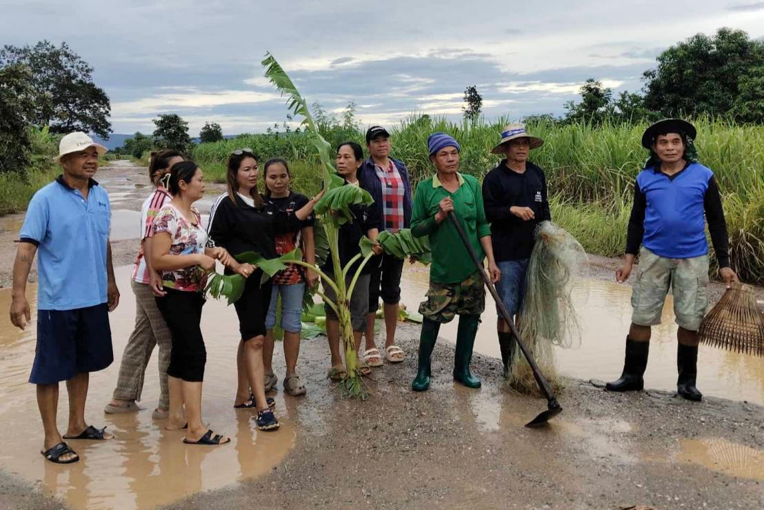 ดังนั้นชาวบ้านหนองคูจึงรวมตัวกัน ออกมาปลูกต้นกล้วยและทอดแหนำสุ่มมาจับปลากลางถนนประชดเนื่องจากเคยเรียกร้องไปยัง อบต.ในพื้นที่ก็ไม่มีใครให้คำตอบและแก้ไขปัญหาให้ชาวบ้านได้ บ้างก็ว่าเป็นของ อบจ. บ้างก็ว่าของทางหลวงชนบท โยนกันไปมา ทีถนนเส้นอื่นทำได้แต่บริเวณดังกล่าวทำไม่ได้ชาวบ้านก็งงเช่นกัน ถนนดังกล่าวถูกทอดทิ้งมานานจนชำรุดเสียหาย เดิมทีถนนดังกล่าวเคยเป็นถนนลูกรังและเปลี่ยนมาเป็นถนนลาดยางแต่ไม่มีการเข้ามาซ่อมแซม จนปัจจุบันได้เกิดการชำรุดเสียหายเป็นหลุมเป็นบ่อขนาดใหญ่ ทำให้ชาวบ้าน ทั้งเด็กนักเรียน คนชราก็ต้องสัญจรลำบากโดยเฉพาะเวลารีบด่วนต้องไปหาหมอลำบากมากต้องใช้เวลาในการเดินทาง จึงอยากให้หน่วยงานที่รับผิดชอบเร่งมาดุแลแก้ไขให้ชาวบ้านด้วยเพราะหน้าฝนยิ่งเดือดร้อนหนักจริงๆ