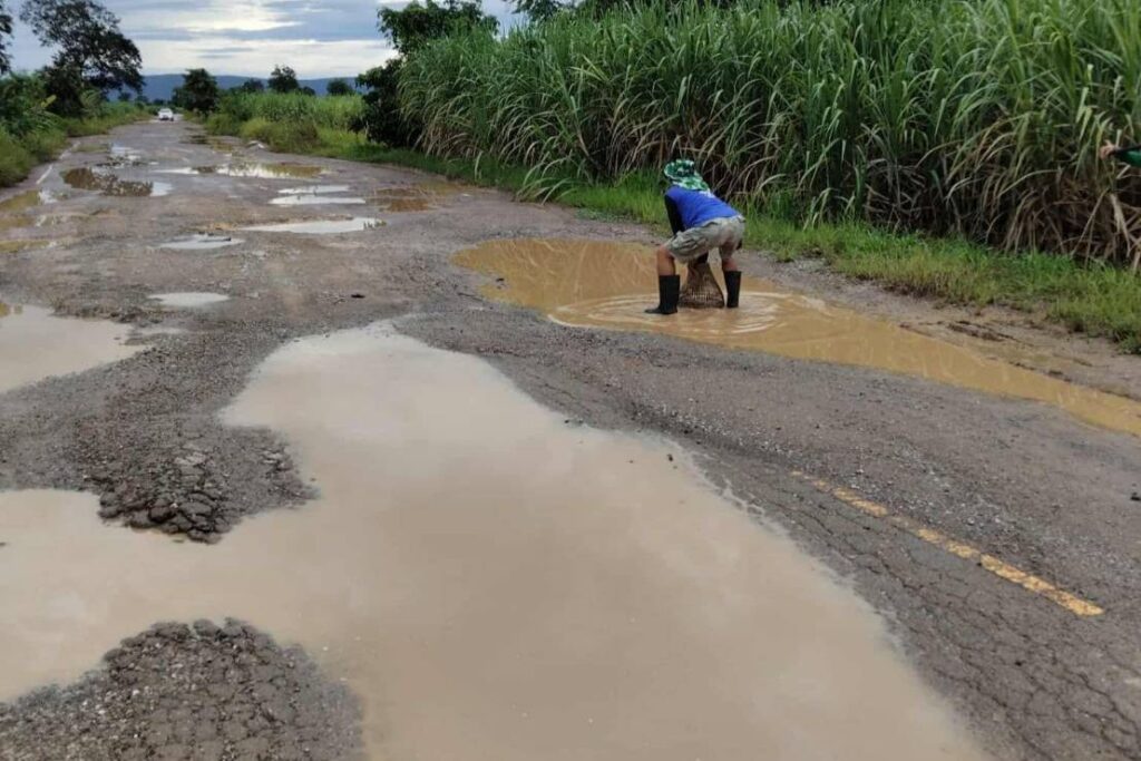 ชาวบ้านสุดทนกับปัญหาถนนเป็นหลุมเป็นบ่อทนมานานหลายปีจึงรวมตัวกันออกมาปลูกต้นกล้วยและทอดแหนำสุ่มมาจับปลากลางถนนประชดวอนเหน่วยงานที่รับผิดชอบเร่งแก้ไขชาวบ้านเดือดร้อนหนัก ถนนดังกล่าวเป็นถนนสายบ้านหนองงูเหลือม ต.บ้านเพชร อ.ภูเขียว เชื่อมต่อ บ้านหินลาด ต.บ้านเต่า อ.บ้านแท่น จ.ชัยภูมิ ระยะทาง7กม.โดยจุดที่เป็นหลุมเป็นบ่อพังเสียหายประมาณ2กม.อยู่ในเขตบ้านหนองคู ตำบลหนองคู อำเภอบ้านแท่น
