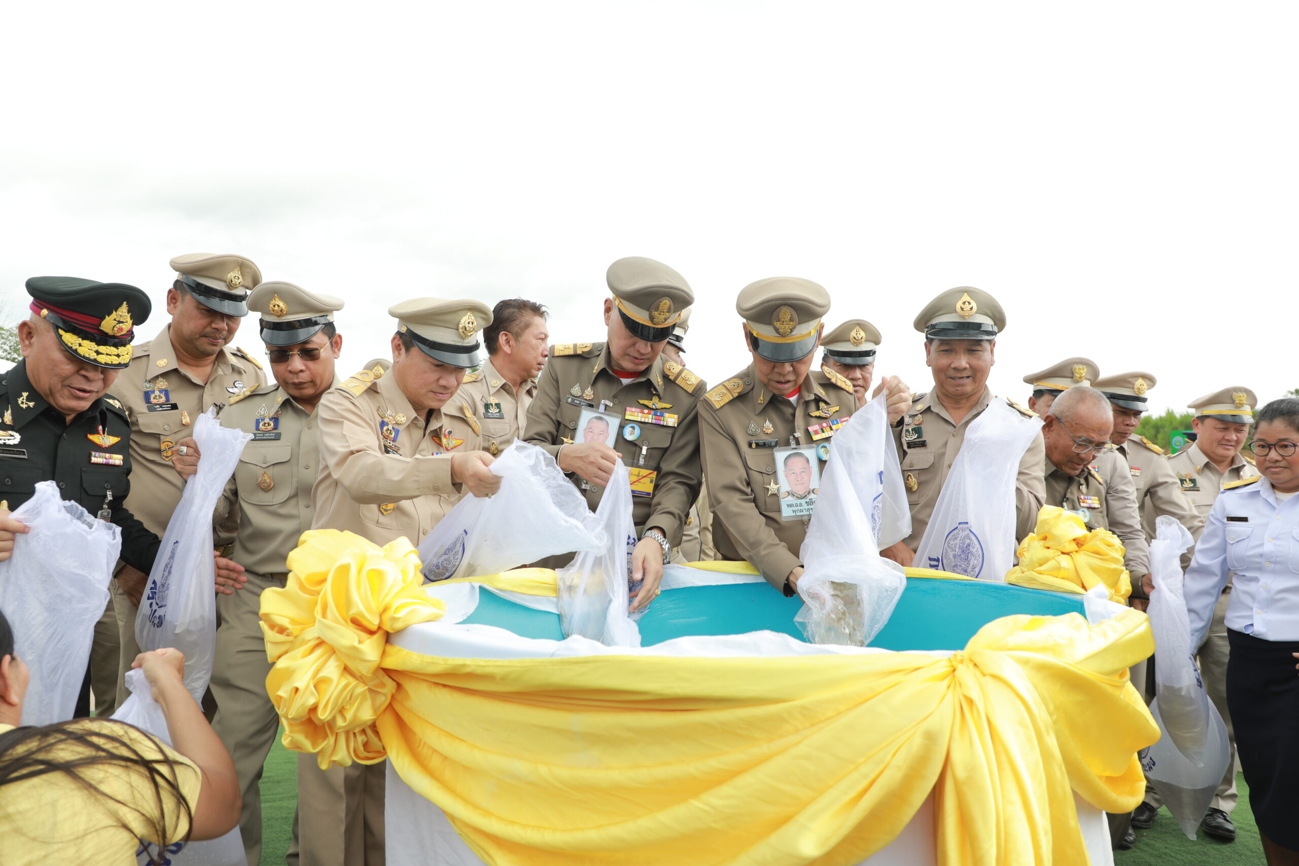 จากนั้น องคมนตรีและคณะตรวจเยี่ยมบริเวณพื้นที่โครงการ และพบปะเยี่ยมเยียนราษฎรและกลุ่มผู้ใช้น้ำ พร้อมทั้งปล่อยพันธุ์ปลาบ้า จำนวน 50,000 ตัว เพื่อสร้างแหล่งอาหารโปรตีน