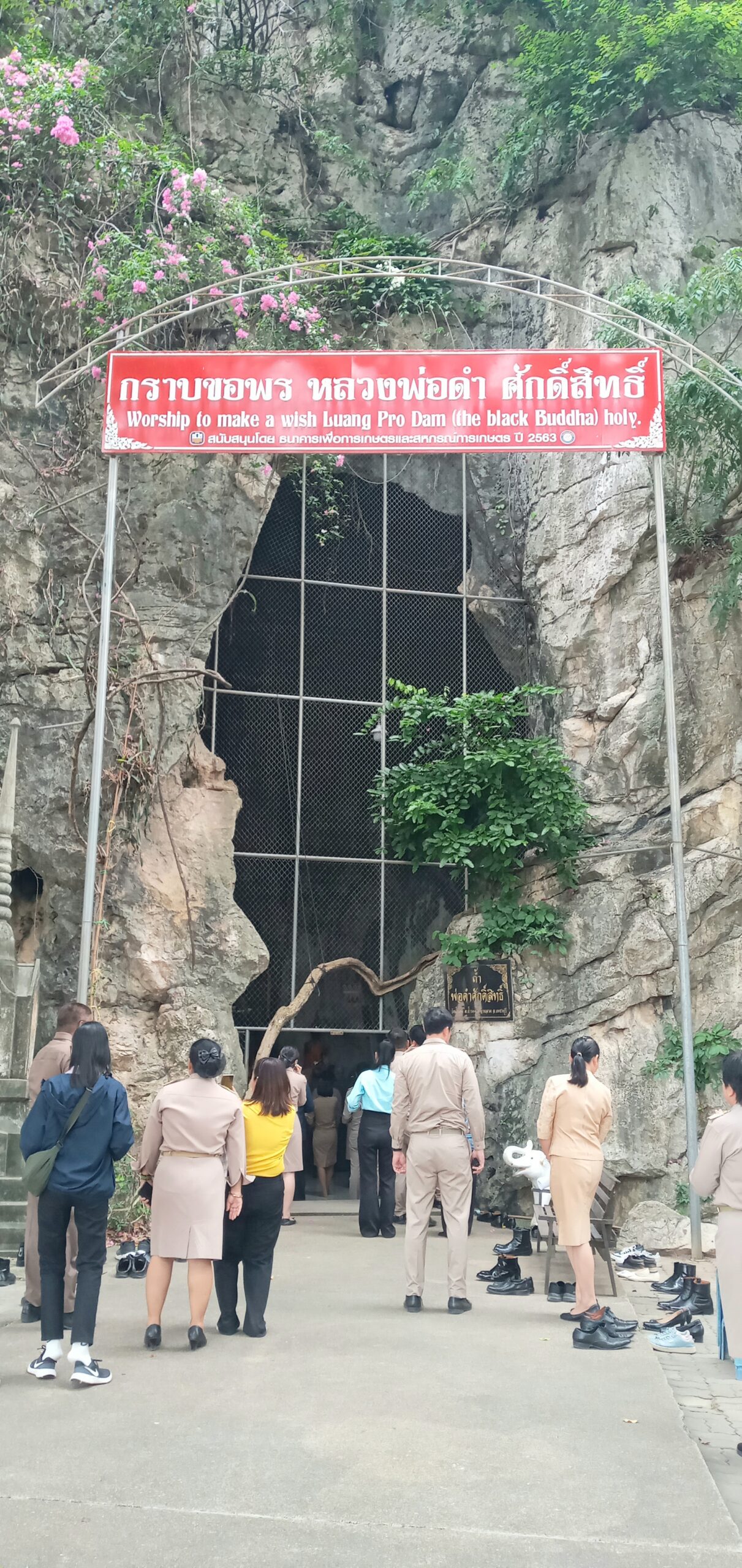 ในช่วงบ่าย องคมนตรีและคณะเดินทางไปยังวัดถ้ำรงค์ ตำบลไร่มะขาม อำเภอบ้านลาด จังหวัดเพชรบุรี ในการตรวจเยี่ยมพื้นที่เพื่อการอนุรักษ์ และต่อยอดพัฒนาเป็นแหล่งท่องเที่ยวของจังหวัดเพชรบุรีต่อไป จากนั้น องคมนตรีและคณะเดินทางไปยังโครงการอ่างเก็บน้ำบ้านหนองไก่เถื่อนอันเนื่องมาจากพระราชดำริ ตำบลห้วยลึก อำเภอบ้านลาด จังหวัดเพชรบุรี รับฟังรายงานสรุปสถานการณ์น้ำและการบริหารจัดการน้ำของโครงการอ่างเก็บน้ำหนองไก่เถื่อนอันเนื่องมาจากพระราชดำริ และการดำเนินงานเพิ่มประสิทธิภาพโครงการ โดยการขุดลอกอ่างเก็บน้ำหนองไก่เถื่อนฯ ซึ่งปัจจุบันดำเนินการแล้วเสร็จเมื่อวันที่ 15 กันยายน 2568 และการก่อสร้างสถานีสูบน้ำด้วยไฟฟ้าพร้อมระบบส่งน้ำฯ ดำเนินการไปแล้วร้อยละ 90 คาดว่าจะแล้วเสร็จในปีงบประมาณ 2568 จากนั้น องคมนตรีและคณะตรวจเยี่ยมบริเวณโครงการ และพบปะเยี่ยมเยียนราษฎรและกลุ่มผู้ใช้น้ำ