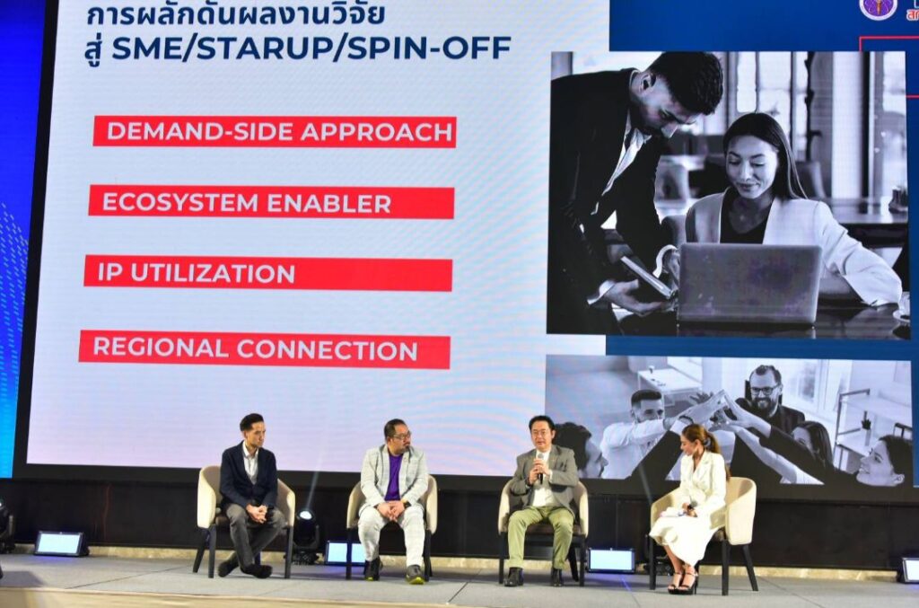 “การเปิดเวทีเชื่อมโยงงานวิจัยกับภาคธุรกิจนี้ ช่วยให้ผลงานวิจัยที่มีคุณค่าไม่ถูกเก็บไว้บนหิ้ง แต่ยังเปิดโอกาสให้ผู้ประกอบการเข้าถึงนวัตกรรมใหม่โดยไม่ต้องเริ่มต้นจากศูนย์ สร้างรายได้และความยั่งยืนแก่นักวิจัยและธุรกิจ อีกทั้งยังช่วยขยายเครือข่ายความร่วมมือระหว่างมหาวิทยาลัย ภาคเอกชน และนักลงทุน ซึ่งมีส่วนสำคัญในการผลักดันเศรษฐกิจนวัตกรรมและยกระดับความสามารถในการแข่งขันของประเทศในระยะยาวร่วมด้วย” อธิการบดี มทร.ธัญบุรี กล่าว