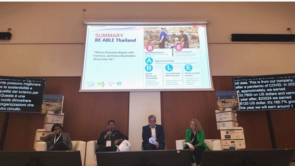 ก่อนขึ้นเวที นายนิธิ ตัวแทนจากประเทศไทย ได้มีโอกาสสนทนากับรัฐมนตรีว่าการกระทรวงผู้พิการของอิตาลี Alessandra Locatelli ซึ่งชื่นชมความตั้งใจของการท่องเที่ยวแห่งประเทศไทย (ททท)ในการสร้างความร่วมมือข้ามทวีป