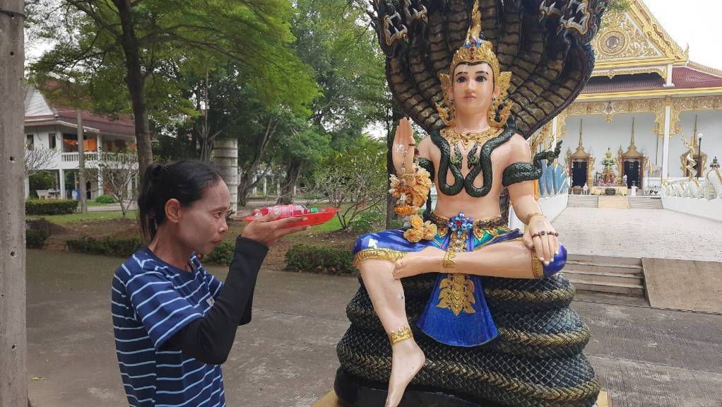 ด้านนางสาวกรรณิกา กว้างทุ่ง กล่าวว่าตนมาแก้บนกับพ่อปู่ศรีสุทโธแม่ย่าศรีปทุมมา พญานาคบริเวณทางขึ้นวิหารไอ้ไข่วัดบึงบาและท้าวเวสสุวรรณ เนื่องจากก่อนหน้านี้ขณะตนทำงานอยู่จู่ๆก็ปวดท้องอย่างหนักและล้มฟุปหมดสติไป โดยหลังจากนั้นตนก็ได้เดินทางไปหาหมอและตรวจพบว่าป่วยหนักเป็นโรคตับอ่อนอักเสบอย่างหนักจนทรมานมาก จึงได้มาขอพรให้พ่อปู่ศรีสุทโธแม่ย่าศรีปทุมมา พญานาคบริเวณทางขึ้นวิหารขอให้อาการดีขึ้นปรากฏว่าผ่านมาไม่ถึง 2 อาทิตย์อาการตนดีขึ้นจริงๆจึงได้มาแก้บนในวันนี้ โดยก่อนหน้านี้ตนเคยมาขอให้สิ่งศักดิ์สิทธิ์ภายในวัดบึงบาฯ เช่น พ่อปู่ศรีสุทโธแม่ย่าศรีปทุมมา พญานาคบริเวณทางขึ้นวิหาร ท้าวเวสสุวรรณ และ ไอ้ไข่วัดบึงบา ช่วยให้หลานสาวอายุ 3 ขวบป่วยด้วยโรคไวรัสสายพันธุ์ใหม่ที่ตอนนั้นอาการรุนแรงมากแต่ก็หายป่วยมาได้อย่างเหลือเชื่อ อีกทั้งก่อนกลับยังได้เสี่ยงโชคโดยการจุดธูปเสี่ยงทายได้เลข 877 กลับไปเสี่ยงโชคต่อไป