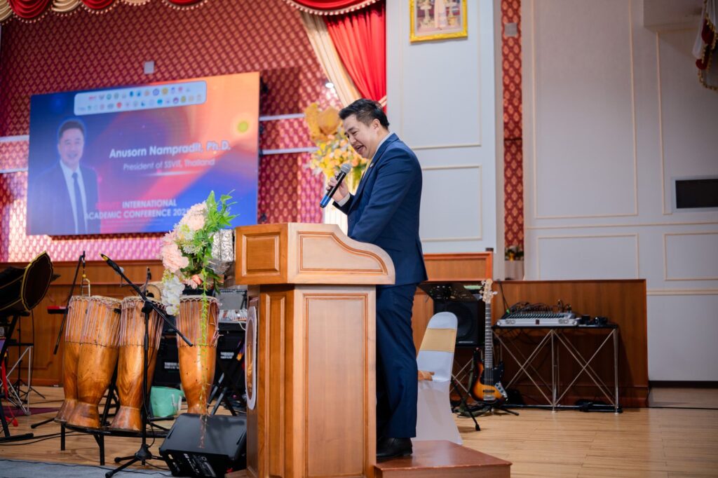 ด้าน ดร.อนุสรณ์ นามประดิษฐ์ อธิการบดี สถาบันสารสาสน์เทคโนโลยีแห่งสุวรรณภูมิ กล่าวว่า สำหรับการจัดงานวิชาการนานาชาติ ครั้งนี้ ได้รับความร่วมมือจากนักวิชาการจาก จีน อินเดีย อินโดนีเซีย สปป.ลาว พม่า ฟิลิปปินส์ เวียดนาม และ ประเทศไทย ร่วมกันแลกเปลี่ยนองค์ความรู้และประสบการณ์ในประเด็นด้านการศึกษา เทคโนโลยี และวัฒนธรรม สะท้อนให้เห็นถึงพลังของ “ความร่วมมือไร้พรมแดน” ที่เชื่อมโยงโลกการศึกษาสู่อนาคตใหม่