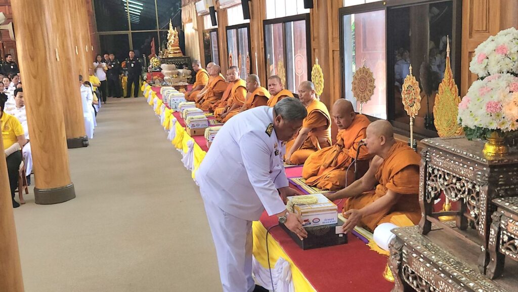 พิธีในช่วงเช้า มี พระวชิโรภาส เจ้าคณะอำเภอพระนครศรีอยุธยา เจ้าอาวาสวัดศาลาปูนวรวิหาร และ พระครูเกษมจันทวิมล เจ้าคณะตำบลท่าวาสุกรี เขต 3 เจ้าอาวาสวัดป้อมรามัญ เป็นประธานฝ่ายสงฆ์ พร้อมพระสงฆ์ทรงสมณศักดิ์รวม 10 รูป เจริญพระพุทธมนต์และบำเพ็ญพระราชกุศลโดยพร้อมเพรียง