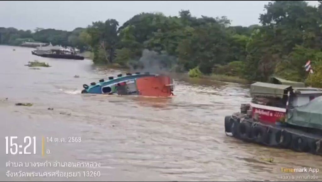 เมื่อเวลา 15.30 น. วันที่ 14 ตุลาคม ร.ต.อ.รุ่ง ปัญญา รองสารวัตร (สอบสวน) สภ.นครหลวง ได้รับแจ้งเหตุเรือลากจูงบรรทุกสินค้าเกิดอับปางกลางแม่น้ำป่าสัก มีผู้ได้รับบาดเจ็บและสูญหาย บริเวณท่าเรือบริษัทเจียไต๋ หมู่ 3 ตำบลปากจั่น อำเภอนครหลวง จังหวัดพระนครศรีอยุธยา จึงรุดไปตรวจสอบพร้อมเจ้าหน้าที่มูลนิธิพุทไธสวรรย์