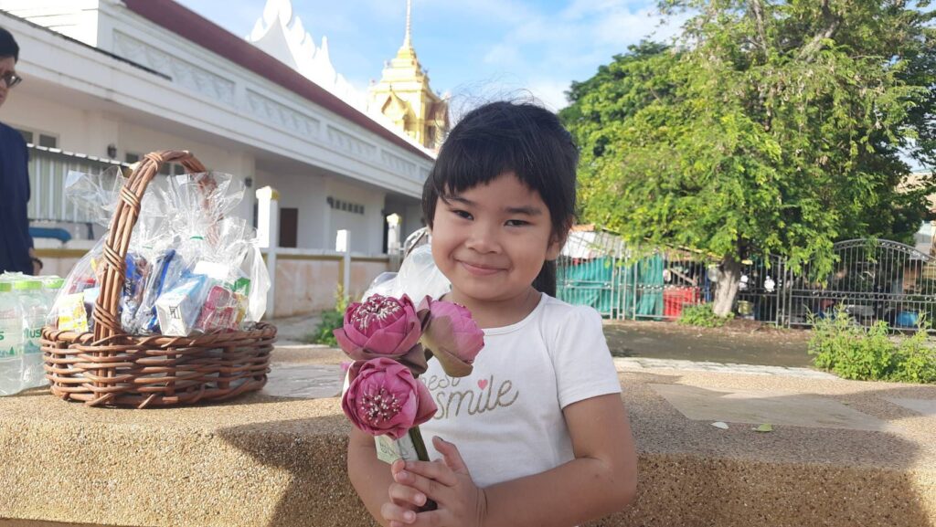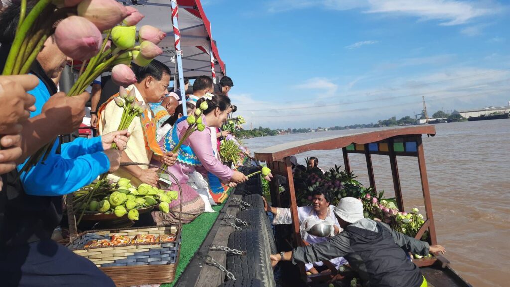โดยเฉพาะการถวายดอกบัว ประชาชนจะนำมาใส่บาตรเรือของพระสงฆ์ จำนวน 108 รูป ที่จะล่องเรือตามกันมากว่า 100 ลำ โดยเริ่มจากเรือพระพุทธ และเรือพระราชสิริวัชรรังษี (ชำนาญ อุตฺตมปญฺโญ) หรือ “หลวงพ่อชำนาญ” เจ้าอาวาสวัดชินวรารามวรวิหาร ฯ ที่ล่องเรือมารับบาตร จากพุทธศาสนิกชนต่างพาครอบครัวมาร่วมงานตักบาตรถวายบัว ในครั้งนี้