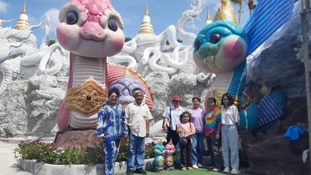 ในขณะที่อุทยานธรรมพญานาคราชพระปางเปิดโลก วัดดอนใหญ่ ก็คึกคักไปด้วยประชาชนและสายมูที่เข้ามาเยี่ยมชมความสวยงานของอุทยานธรรมพญานาคราชพระปางเปิดโลก และที่เป็นไฮไลท์ที่ประชาชนส่วนใหญ่ ยังคงต้องร่วมกัยถ่ายภาพคู่กับพญานาคทั้ง 3 ตน ซึ่งมีเจ้าสัว (พญานาคน้อย) เจ้านาง เจ้าขุน ที่โด่งดังในกระแสโซเชียลอยู่ในขณะนี้ แม้อากาศจะร้อนอบอ้าวก็ยังไม่ถอย ต้องถ่ายรูปเอาไว้อวดกันในโชเชียลอีกด้วย