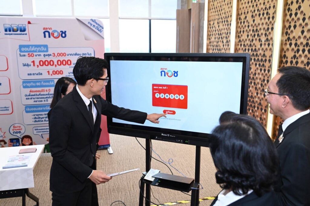 ข่าวดี สำหรับคนไทยทุกคน ที่มีอายุตั้งแต่ 15 ปีขึ้นไป รัฐบาลได้มอบหมายให้กองทุนการออมแห่งชาติ เดินหน้านวัตกรรมออมใหม่อย่าง “สลาก กอช.” เป็นสลากขูดแบบดิจิทัล ภายใต้แนวคิด “ลุ้นโชคเงินไม่หาย กลายเป็นเงินออม” ให้คนไทยทุกคนได้มีเงินออมมากขึ้น สามารถซื้อได้ง่ายๆ ผ่านแอปพลิเคชั่น กอช. ในราคาใบละ 50 บาท ซื้อได้ไม่เกิน 3,000 บาทต่อเดือน จำนวน 5 ล้านฉบับต่องวด ออกรางวัลทุกวันศุกร์ เวลา 5 โมงเย็น