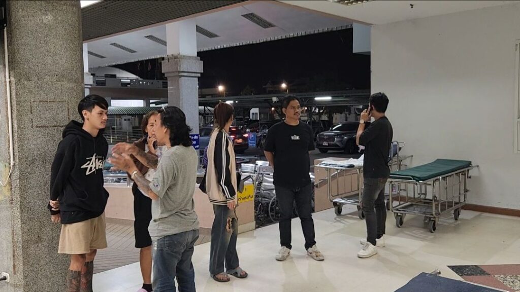 ด้าน. นางสาว วิภาดา. น้อมธรรม อายุ40 ปี ผู้จัดการร้านอาหารแห่งหนึ่ง บอกว่าผู้บาดเจ็บเป็นการ์ดอยู่ที่ร้าน และช่วงเวลาประมาณ 23.00 นได้บอกกับคนทางร้านว่าจะออกไปทำธุระข้างนอกโดยขี่รถจักรยานยนต์ทางร้านออกไป พนักงานในร้านก็ห้ามไว้บอกว่าอย่าออกไปแต่ผู้บาดเจ็บบอกไม่เป็นไร เหมือนจะไปเคลียร์อะไรบางอย่าง จากนั้นก็ขี่รถจักรยานยนต์ออกจากร้านไปจนมีเจ้าหน้าที่มูลนิธิมาสอบถามที่ร้านว่ามีญาติไหมตนจึงทราบข่าว ว่า ถูก แทงได้รับบาดเจ็บสาหัส ส่วนเรื่องสาเหตุนั้นไม่ทราบว่าเกิดจากเรื่องอะไรแต่พอฟังจากคนรอบข้างบอกว่ามีผู้หญิงโทรศัพท์มาหา ผู้บาดเจ็บก่อนที่ผู้บาดเจ็บจะขี่รถจักรยานยนต์ออกไป จนถูกทำร้ายดังกล่าวซึ่งก็ไม่แน่ใจว่าผู้หญิงคนนั้นมีส่วนรู้เห็นหรือไม่ แต่ที่แน่เป็นเรื่อง ผู้หญิงแน่นอน