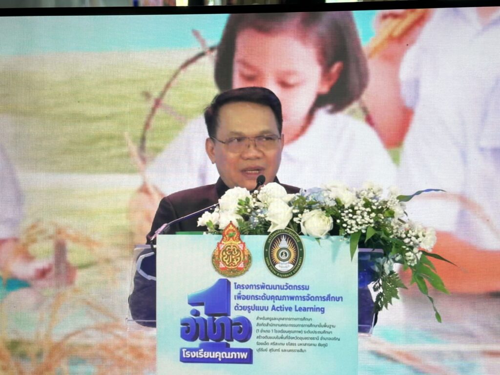 “Active Learning คือ หัวใจในการสร้างสรรค์นวัตกรรมใหม่ ๆ ซึ่งถ้าทำได้แล้วก็จะอยู่ในหัวใจของเด็ก ของครู เด็ก ๆ จะเจริญก้าวหน้า ไม่ว่าจะเรียนในสาขาใดก็จะสามารถใช้กระบวนการคิดในการสร้างนวัตกรรมได้ รวมถึงครูอาจารย์เองก็จะมีความสุข ทำให้เด็กมีส่วนร่วมในการเรียนรู้ไปพร้อมกับครู ซึ่งแน่นอนว่านโยบายของรัฐมนตรีว่าการกระทรวงศึกษาธิการ ที่ว่าถ้าครูมีผลงาน มีความรู้ ความสามารถก็จะประเมินวิทยฐานะตามศักยภาพของครู ก็จะเป็นขวัญกำลังใจในการทำงานให้กับครู ทำให้ครูทุ่มเทเวลาให้กับการเรียนการสอนมากขึ้น และจะมีรายได้จากผลการทำงานวิชาการด้วย ซึ่งเป็นผลที่เชื่อมโยงกันมาเมื่อเด็กได้ดี ครูก็ได้ดี สังคมไทยก็จะได้ดี เพราะทุกวันนี้เขาแข่งกันด้วยนวัตกรรมใหม่ ๆ ดังนั้นขอให้ครูอาจารย์ผู้บริหารภาคภูมิใจกับความเป็นผู้นำในการเปลี่ยนแปลง เป็นคนที่จุดประกายการเรียนรู้ให้กับเด็ก ๆ ต่อไป” เลขาธิการ กพฐ.กล่าว