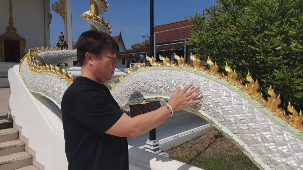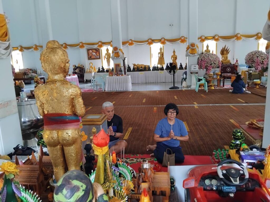 ด้านนายวิชัย ศรีวิภาสถิตย์ พร้อมครอบครัวเดินทางมาจากย่านอรุณอัมรินทร์ ซึ่งนายวิชัยเป็นหนึ่งในผู้ที่เห็นข่าวท้าวเวสสุวรรณและไอ้ไข่วัดบึงบา จากรายการ “ตะลอนข่าว” ทางไทยรัฐทีวี ที่นำเสนอเรื่องราวของบุคคลที่มาขอพรจากองค์ท้าวเวสสุวรรณ แล้วเกิดปาฏิหาริย์ จากผู้ป่วยที่อาการหนักจน นอนติดเตียง ไม่สามารถทำอะไรได้ แล้วอาการดีขึ้นอย่างเห็นได้ชัดหลังมากราบไหว้ขอพรท้าวเวสฯไม่ถึง 7 วันก็หายทันที จากเรื่องดังกล่าวทำให้ตนเกิดความหวังและแรงศรัทธา เนื่องจากบิดาของตนเองกำลังป่วยหนัก จึงตั้งใจพาครอบครัวเดินทางมาขอพรด้วยตัวเอง ต่อท้าวเวสสุวรรณและไอ้ไข่วัดบึงบา จึงพากันเดินทางมาเพื่อขอพรกับท้าวเวสสุวรรณและไอ้ไข่วัดบึงบา ซึ่งในการเดินทางครั้งนี้ตนใช้ความศรัทธาเป็นที่พึ่งทางใจ เพื่อมาขอพรจากท้าวเวสสุวรรณให้คุณพ่อที่กำลังป่วยหนักอยู่หายดีโดยเร็ว ขณะเดียวกันยังได้พาลูกๆมาขอพรกับไอ้ไข่วัดบึงบาในเรื่องการศึกษา เพื่อขอให้ลูกๆได้เรียนจบ ตามที่ตั้งใจไว้ นายวิชัยยังกล่าวอีกว่าพอมาถึงวัดบึงบาประภาสะวัตแล้วมีบรรยากาศที่ดี มีร่มรื่นและสงบดี ทำให้การแสวงบุญครั้งนี้เป็นไปอย่างราบรื่นและเปี่ยมด้วยความหวัง และก่อนกลับยังได้พากันเดินลูบเกล็ดพญานาคเข้ากระเป๋าสตางค์ตามที่เห็นในข่าวอีกด้วย และไม่ลืมจุดธูปเสี่ยงทายได้เลข 588 755 นำกลับไปลุ้นโชคในงวดที่จะถึงนี้อีกด้วย