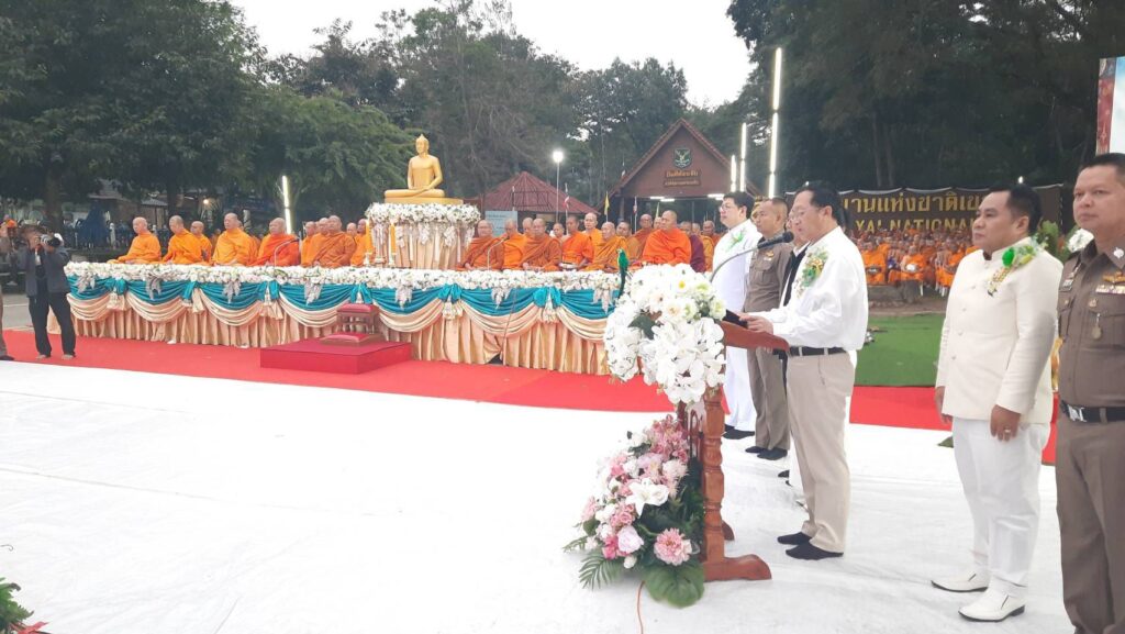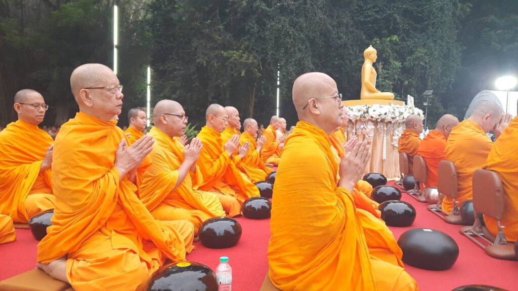 ในพิธีพุทธศาสนิกชนได้พร้อมใจกันแสดงตนเป็นพุทธมามกะ อาราธนาศีล 5 เจริญสมาธิภาวนาถวายเป็นพระราชกุศลแด่ สมเด็จพระนางเจ้าสิริกิติ์ พระบรมราชินีนาถ พระบรมราชชนนีพันปีหลวง ประธานในพิธีนำถวายไทยธรรมเป็นสังฆทาน ประธานสงฆ์ได้เผดียงอาหารตักบาตรเพื่อนำไปมอบให้คณะสงฆ์ 323 วัด และเจ้าหน้าที่ทหารตำรวจในพื้นที่ 4 จังหวัดภาคใต้ อีกทั้งช่วยเหลือบรรเทาทุกข์ผู้ประสบภัยในทุกภูมิภาคของประเทศไทย จากนั้นคณะสงฆ์ 1,000 รูปแปรแถวรับบิณฑบาต