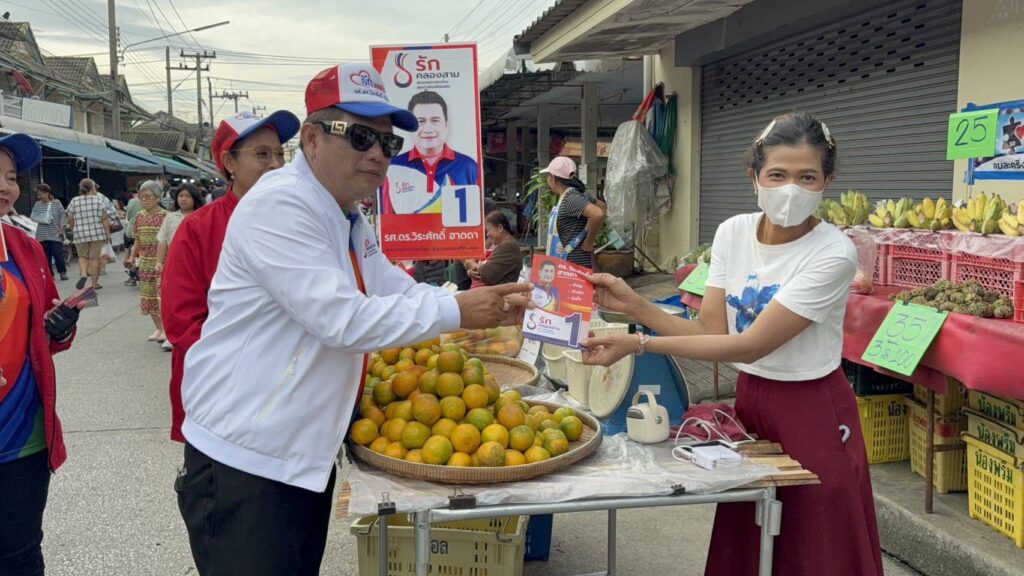 วันที่ 14 ธันวาคม 68 ผู้สื่อข่าวรายงานว่า รศ.ดร.วิระศักดิ์ ฮาดดา ผู้สมัคร ชิงตำแหน่ง นายก อบต.คลองสาม หมายเลข 1 ทีมรักคลองสาม พร้อมทีมงานผู้ช่วยหาเสียงออกเดินเท้าพบปะประชาชนภายในตลาดสดไทยสมบูรณ์ 3 และ ตลาดเช้าภายในหมู่บ้านพฤกษาบี ม.4 ต.คลองสาม อ.คลองหลวง จ.ปทุมธานี โดยแจกใบแนะนำตัวและใบนโยบายในการหาเสียงแจกให้กับประชาชนที่มาเดินจับจ่ายซื้อของในตลาดสดในช่วงเช้า