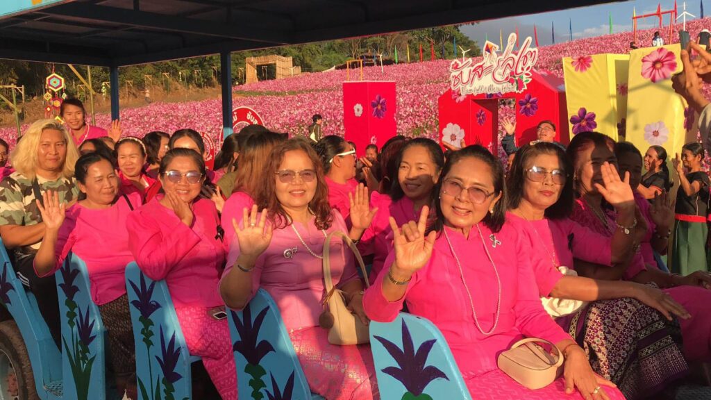 พร้อมรับนักท่องเที่ยวที่จะเดินทางมาเที่ยวชมความสวยงามของดอกไม่สีชมพูอมม่วงสีขาวอมม่วง กลีบดอกใหญ่สวยงามบานสะพรั่งเต็มทุ่งแล้วเวลานี้และกำลังทยอยออกดอกชูช่อบานไปทั่วทุ่งกว่า50ไร่เชิญชวนนทท.ที่จะมา เคาท์ดาวน์ท่องเที่ยวรับปีใหม่ 69 อย่างคึกคัก