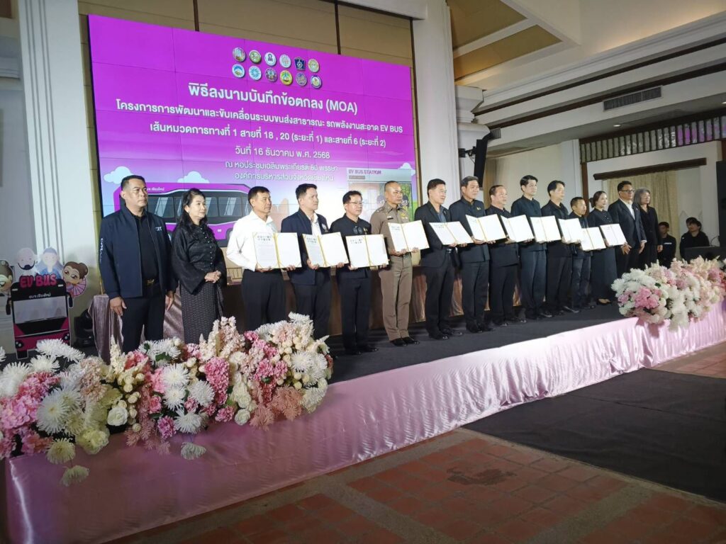 วันที่ 16 ธันวาคม 2568 ที่หอประ ชุม 80 พรรษา อบจ.เชียงใหม่นายรัฐพล นราดิศร ผู้ว่าราชการจังหวัดเชียงใหม่ เป็นประธานแถลงข่าวโครงการการพัฒนาและขับเคลื่อนระบบขนส่งมวลชนสาธารณะรถพลังงานสะอาด EV Bus เพื่อยกระดับคุณภาพชีวิตและส่งเสริมท่องเที่ยงเชียงใหม่มีนายพิชัย เลิศพงศ์อดิศร หรือส.ว.ก๊อง นายก อบจ.เชียงใหม่นายสมชาติ วัฒนากล้า นางวิทยาลักษณ์ สามใจ นพ.เติมชัย เติมยิ่งยง รองนายก อบจ. นายพจนา ศรีศิลป์นันท์ รองนายกเทศมนตรีนครเชียงใหม่ ร่วมแถลงข่าว และบันทึกลงนามความตกลงเครือข่ายภาคี (MOA) 11 หน่วยงาน ตามลำดับ โดยมีผู้ร่วมงาน กว่า 200 คน