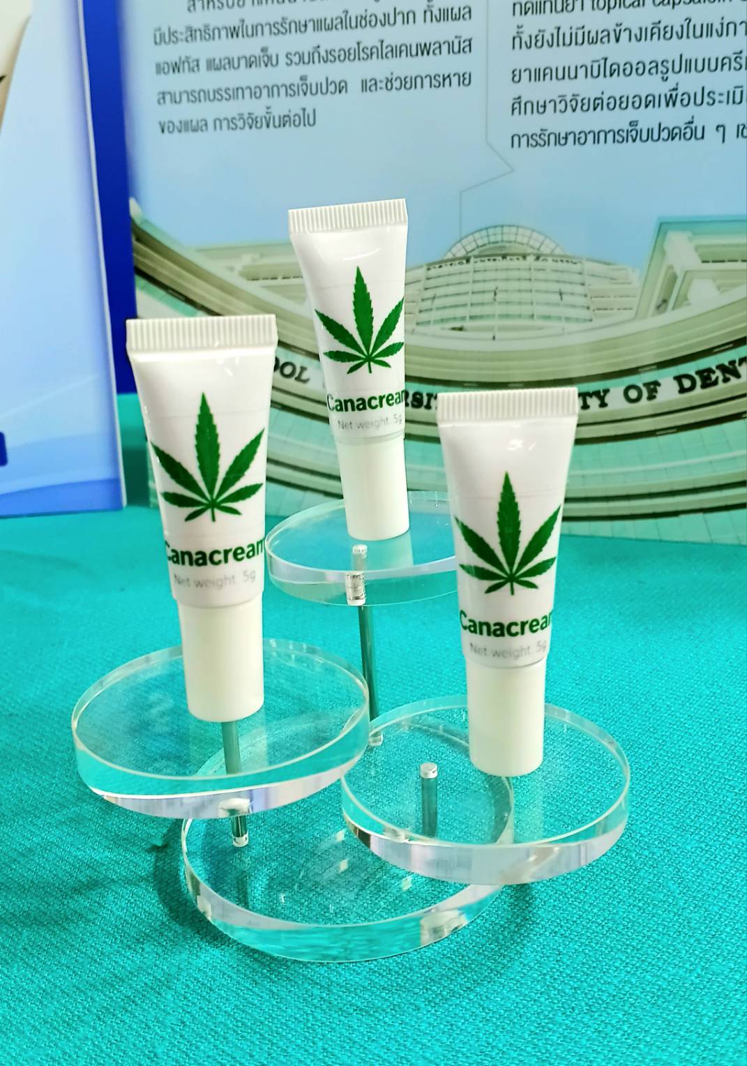 ศ.ดร.ทพญ.วรานันท์ บัวจีบ หัวหน้าโครงการวิจัยฯ กล่าวว่า งานวิจัยยกระดับ “กัญชงไทย” จากพืชเศรษฐกิจสู่วัตถุดิบยาแห่งอนาคต ทางคณะวิจัยได้พัฒนาสารสกัด CBD จากกัญชงไทยที่ไม่มีฤทธิ์เสพติด และต่อยอดเป็นยาทาเฉพาะที่ 2 สูตร ได้แก่ Canalog สำหรับอาการปวดในช่องปาก และ Canacream สำหรับอาการปวดข้อต่อขากรรไกร โดยทั้งสองสูตรผ่านการทดสอบทางคลินิกแล้ว ซึ่งจะให้ผลลดอาการปวดเทียบเท่ายามาตรฐานสากล (gold standard) แต่มีความปลอดภัยสูงกว่า ไม่เสพติด และสามารถผลิตจากวัตถุดิบที่ปลูกได้ในประเทศ งานวิจัยนี้เปิดทางให้กัญชงไทยก้าวสู่การเป็นวัตถุดิบยาในระบบสุขภาพ และลดการพึ่งพาการนำเข้ายาแก้ปวดจากต่างประเทศอย่างเป็นรูปธรรม สร้างรายได้ให้กับประเทศ
